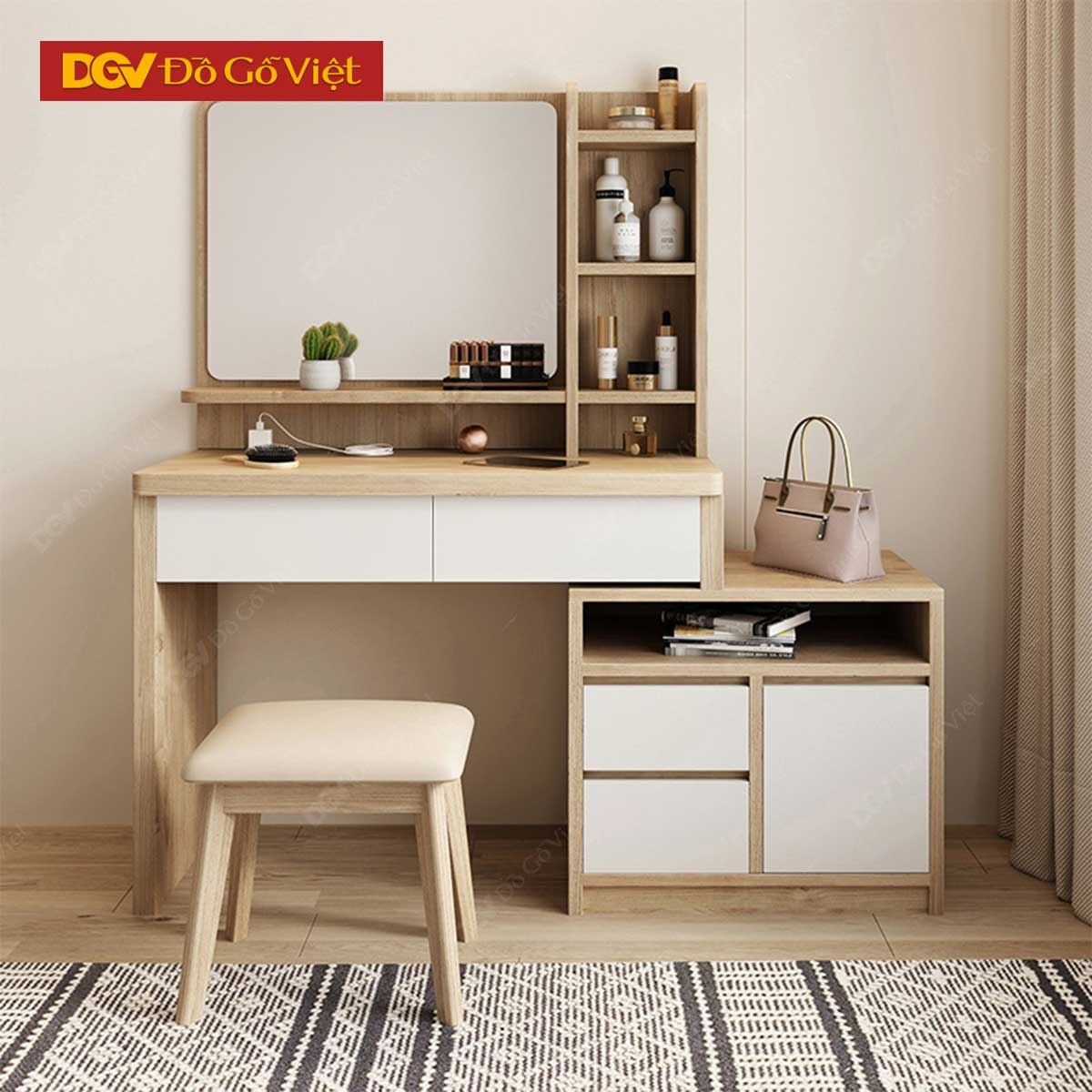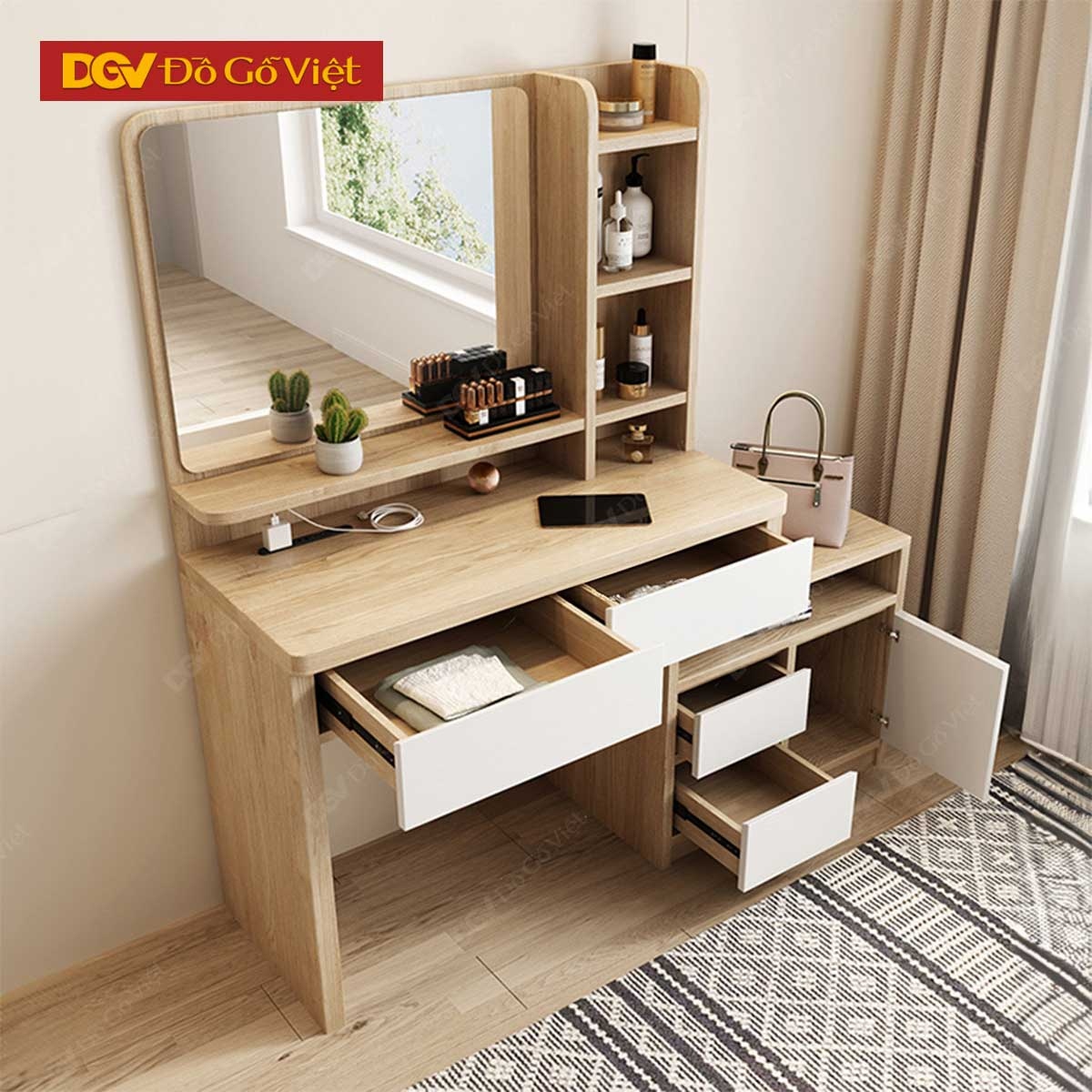 Bàn Trang Điểm Gỗ Cao Cấp Màu Sồi Phối Trắng Đẹp Giá Rẻ