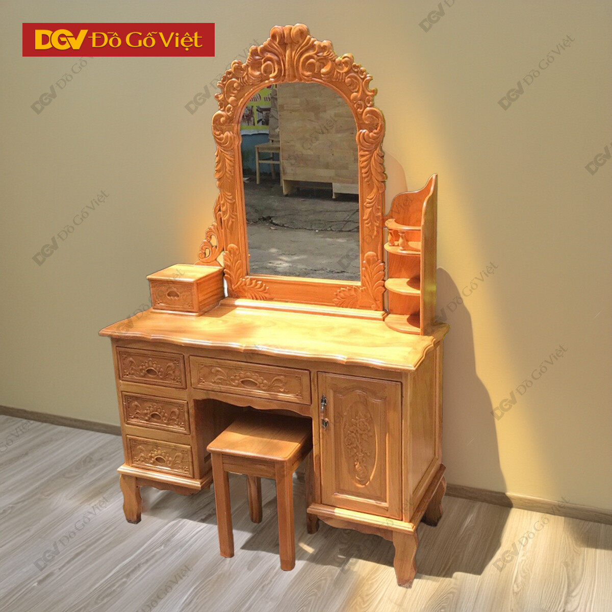 Bàn Trang Điểm Gõ Đỏ 80cm Chạm Hoa Hồng Kèm Hộc Kệ Rẻ Đẹp