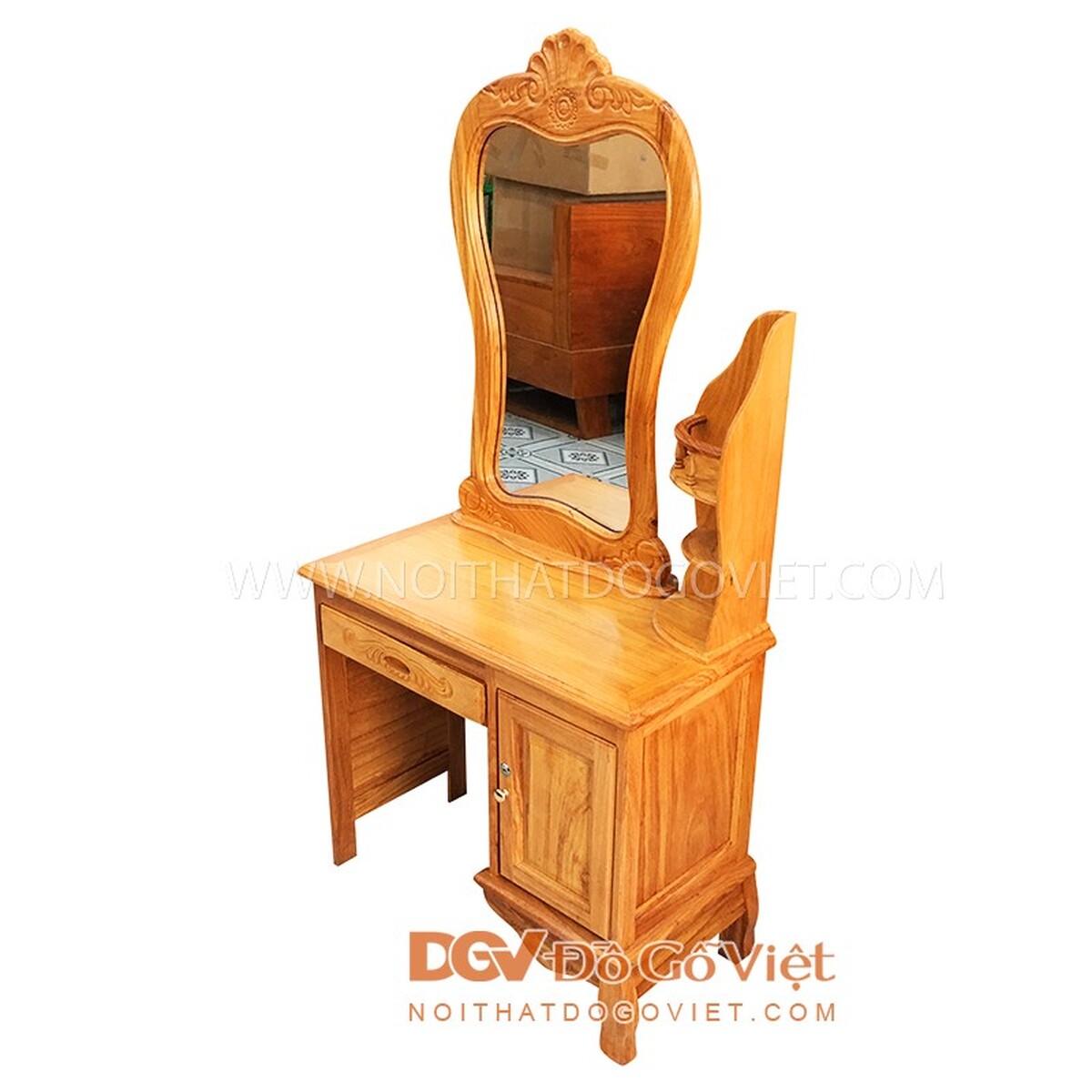 Độ bền của bàn trang điểm luôn được đảm bảo với quy trình sản xuất đồng bộ từ khâu xử lý gỗ đến quá trình chế tác, phun sơn và hoàn thiện sản phẩm. Bàn phấn chống được ẩm mốc, mối mọt, cong vênh và các ảnh hưởng từ môi trường hiệu quả.