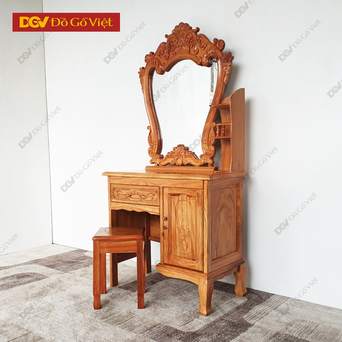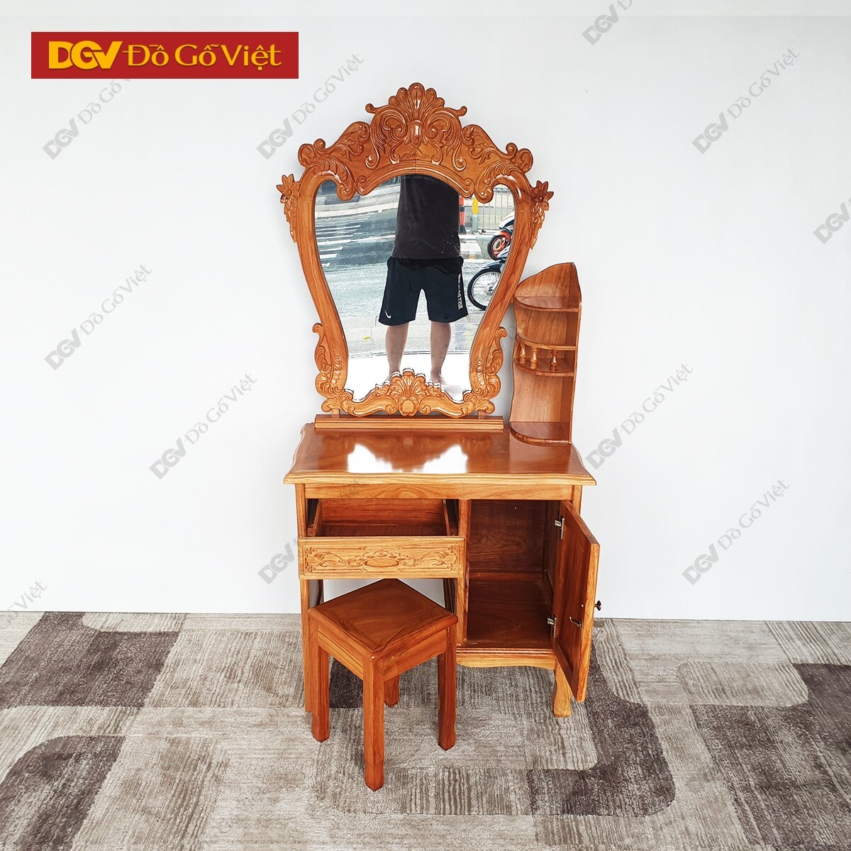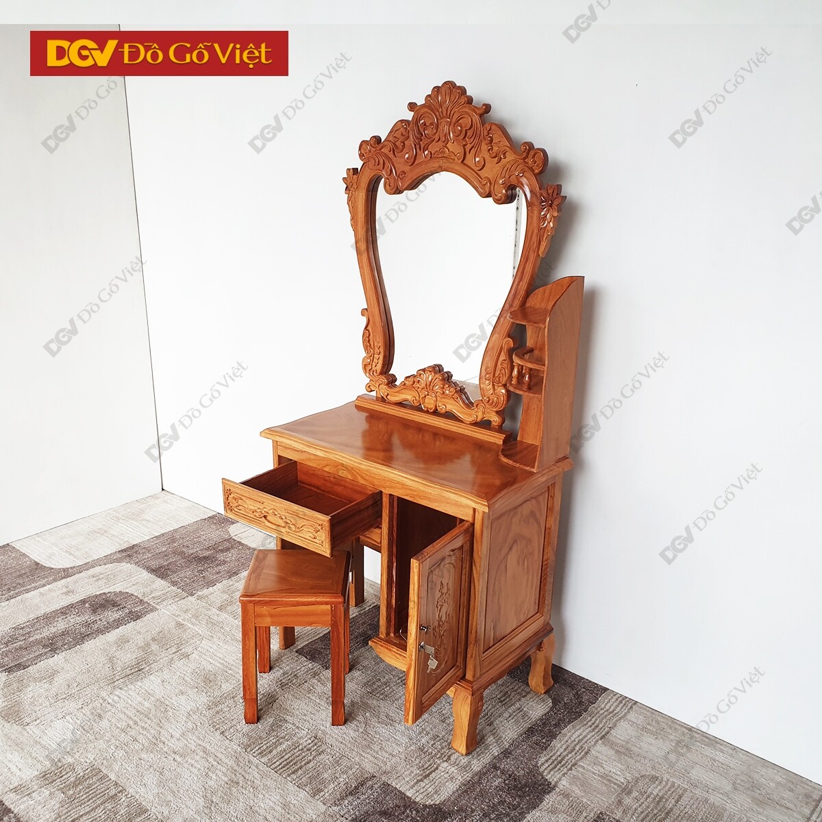 Bàn Trang Điểm Gõ Đỏ 80cm Chạm Hoa Hồng Kèm Hộc Kệ Rẻ Đẹp
