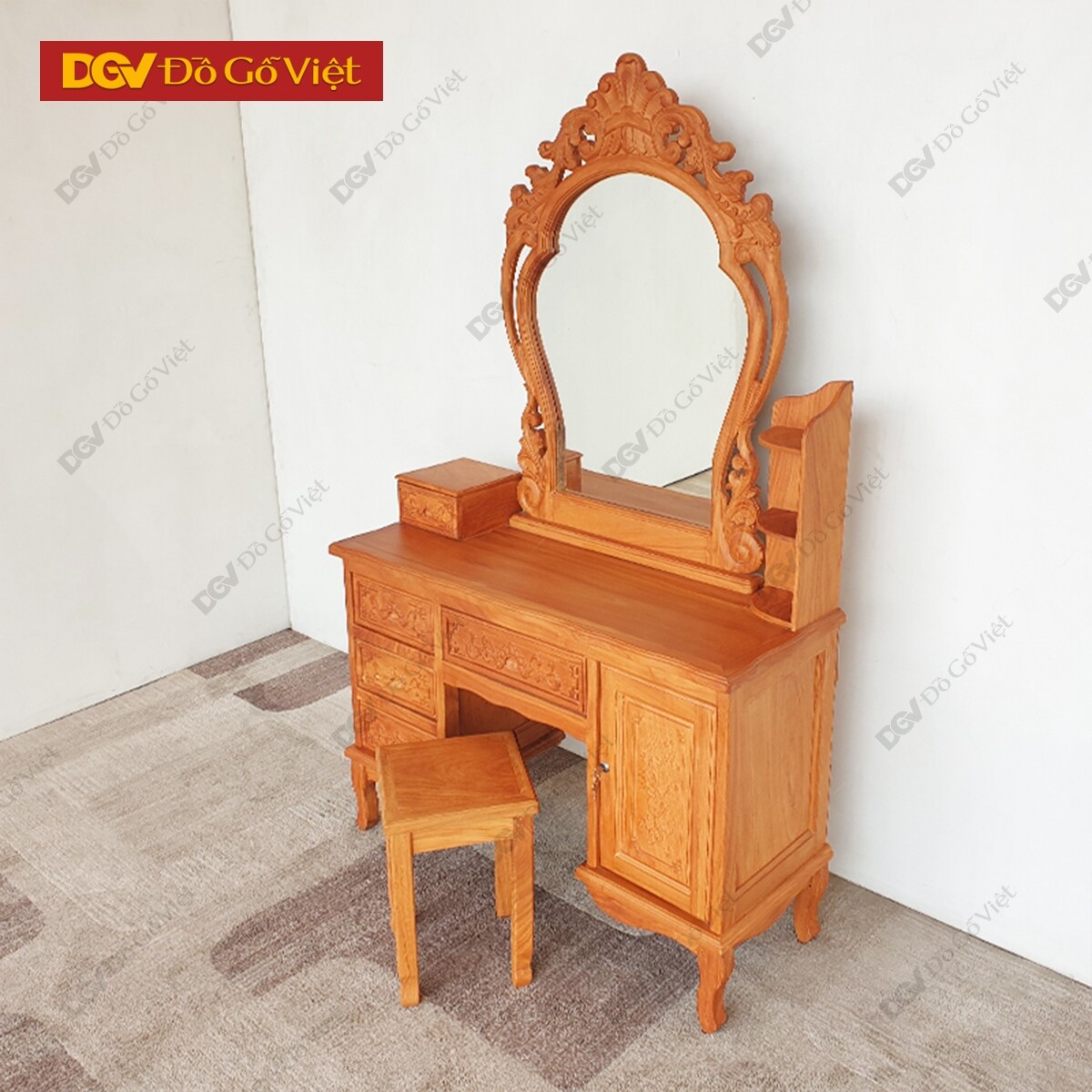 Bàn Trang Điểm Gõ Đỏ 80cm Chạm Hoa Hồng Kèm Hộc Kệ Rẻ Đẹp