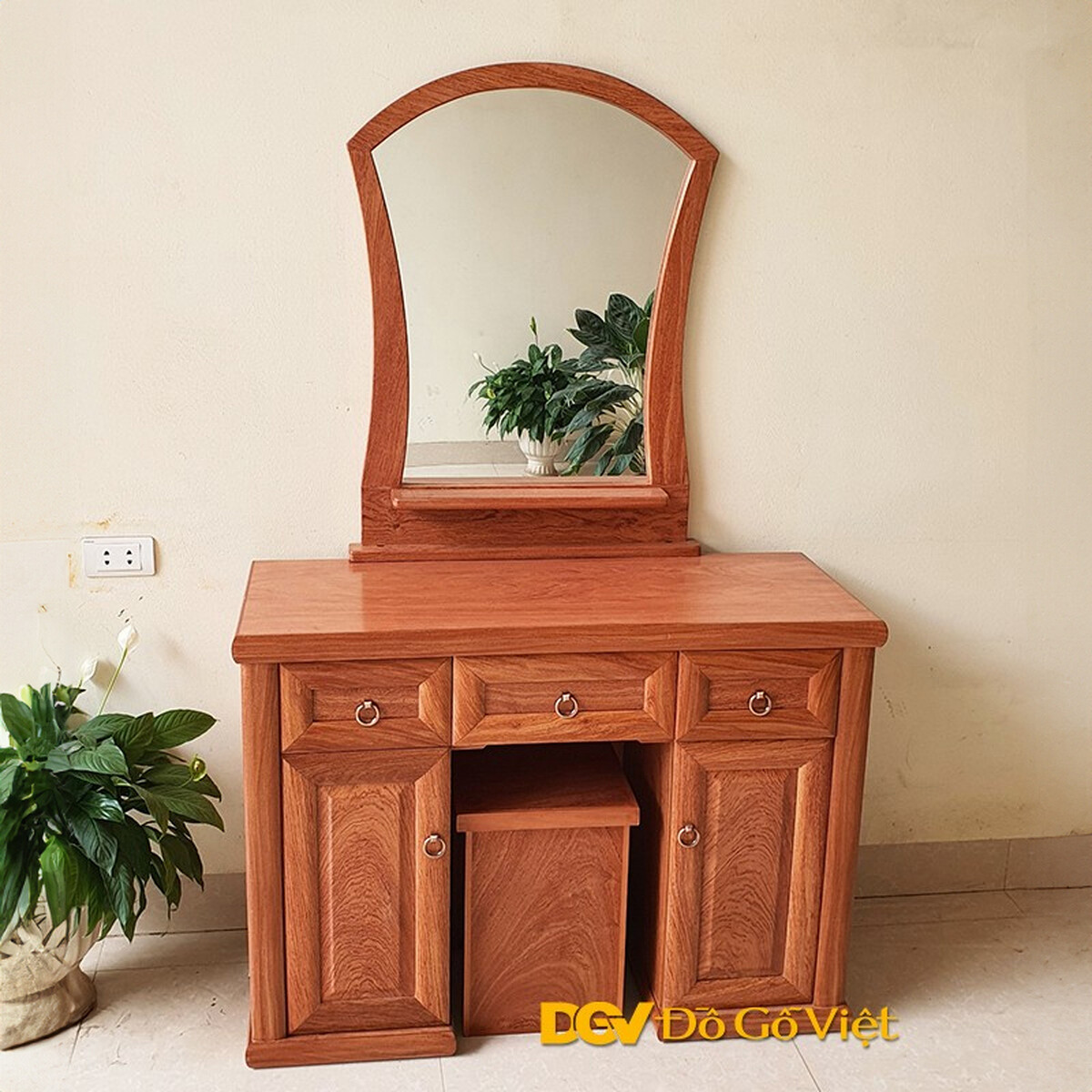Bàn Trang Điểm Gỗ Hương Đá 2 Thùng Kính Cong Đẹp Giá Rẻ