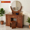 Bàn Trang Điểm Gỗ Sồi Nga Màu Nâu Kính Tròn 2 Thùng Đẹp Rẻ