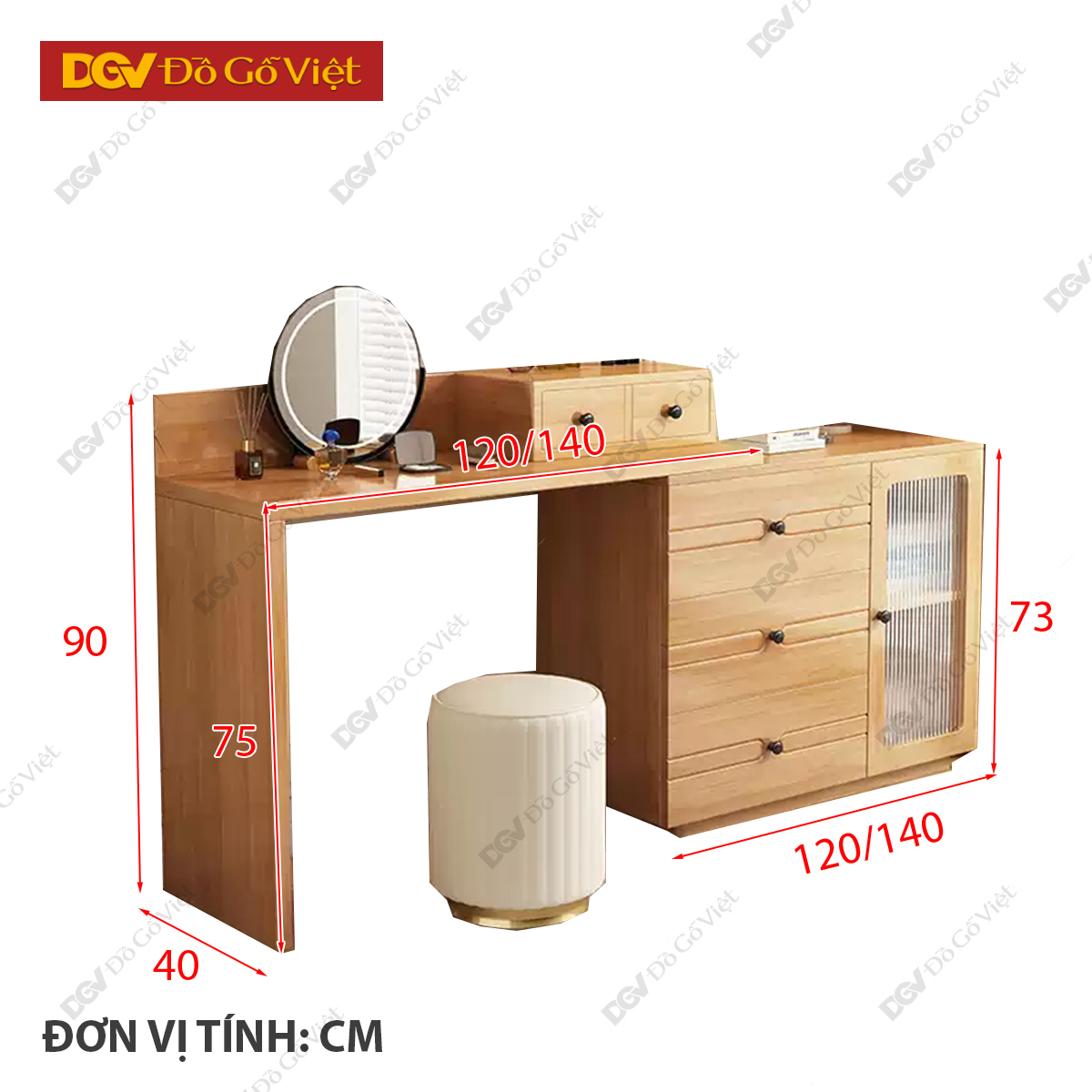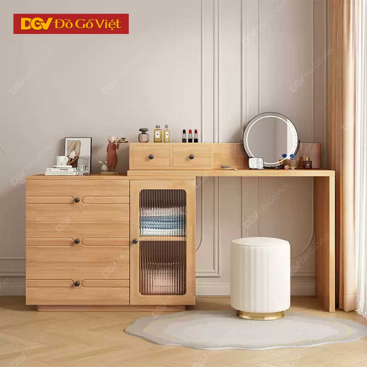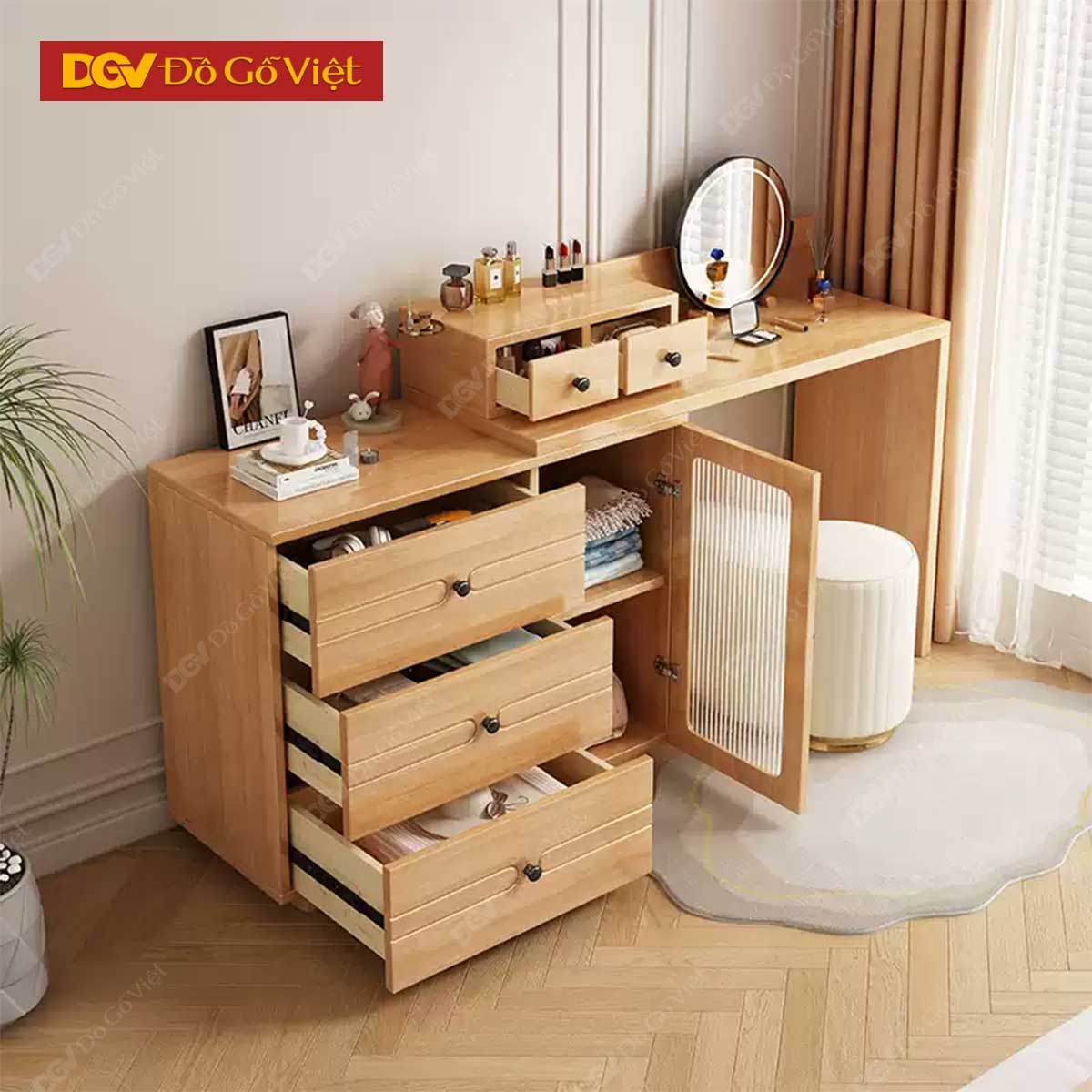 Tủ Để Đồ Mini Gỗ Sồi Tự Nhiên Kèm Bàn Phấn Cho Phòng Ngủ