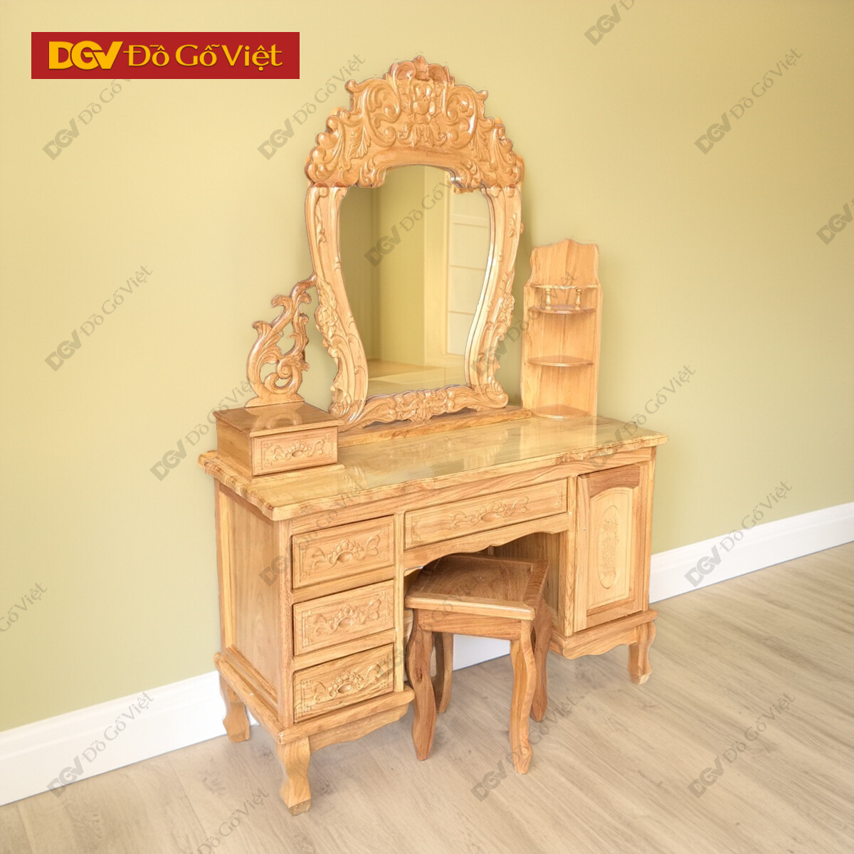 Bàn Trang Điểm Gõ Đỏ 80cm Chạm Hoa Hồng Kèm Hộc Kệ Rẻ Đẹp