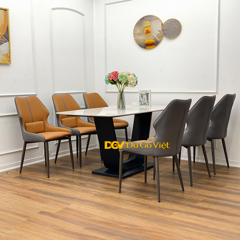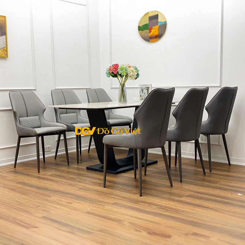 Bộ Bàn Ăn Chân Sắt Mặt Đá Bền Bỉ 6 Ghế Cho Chung Cư