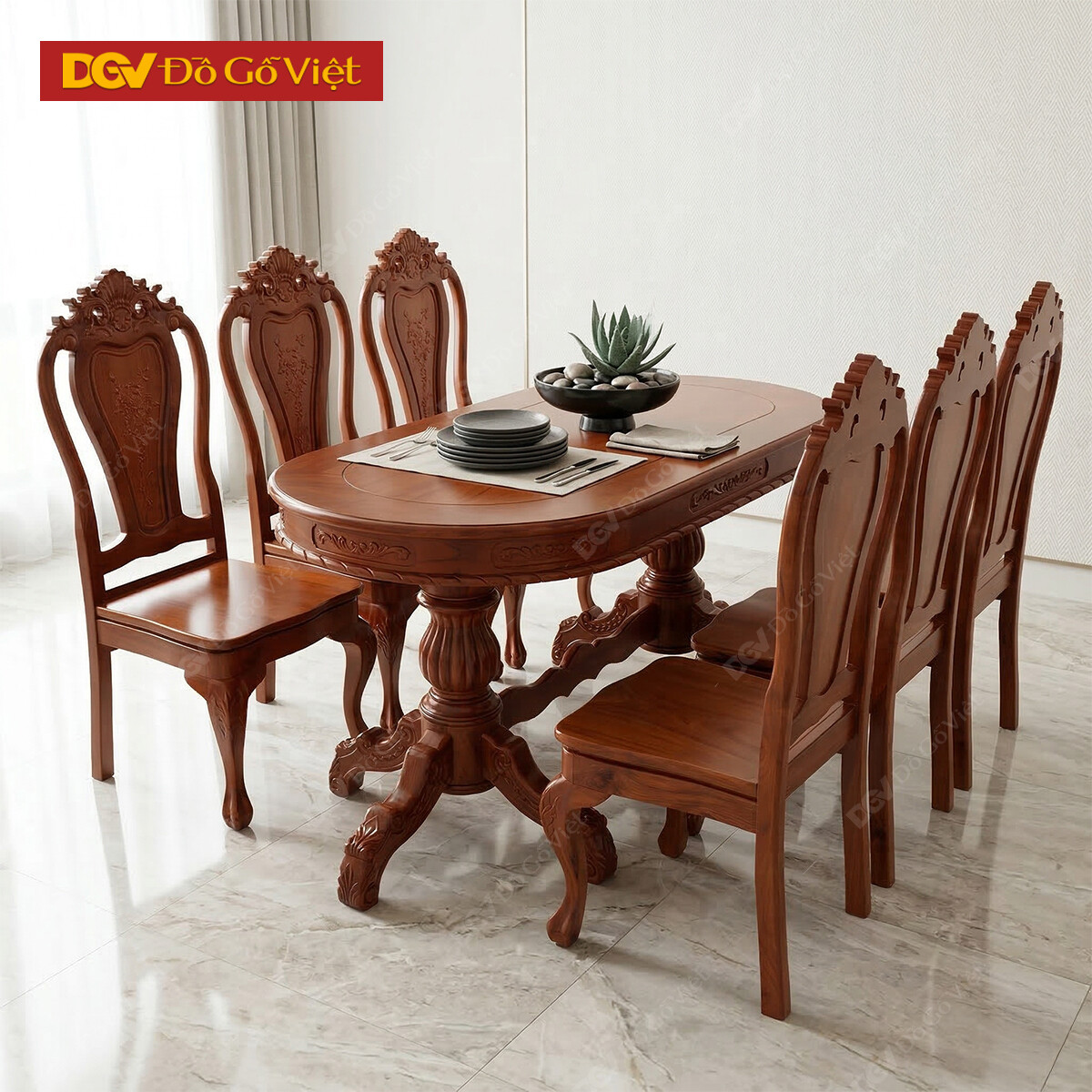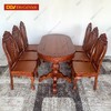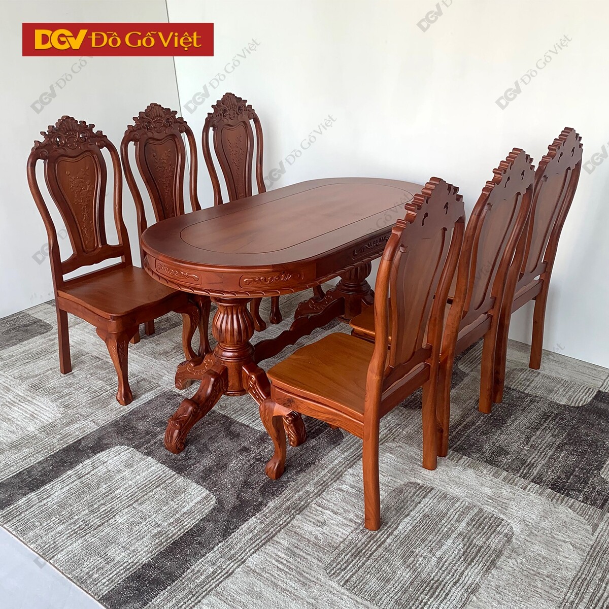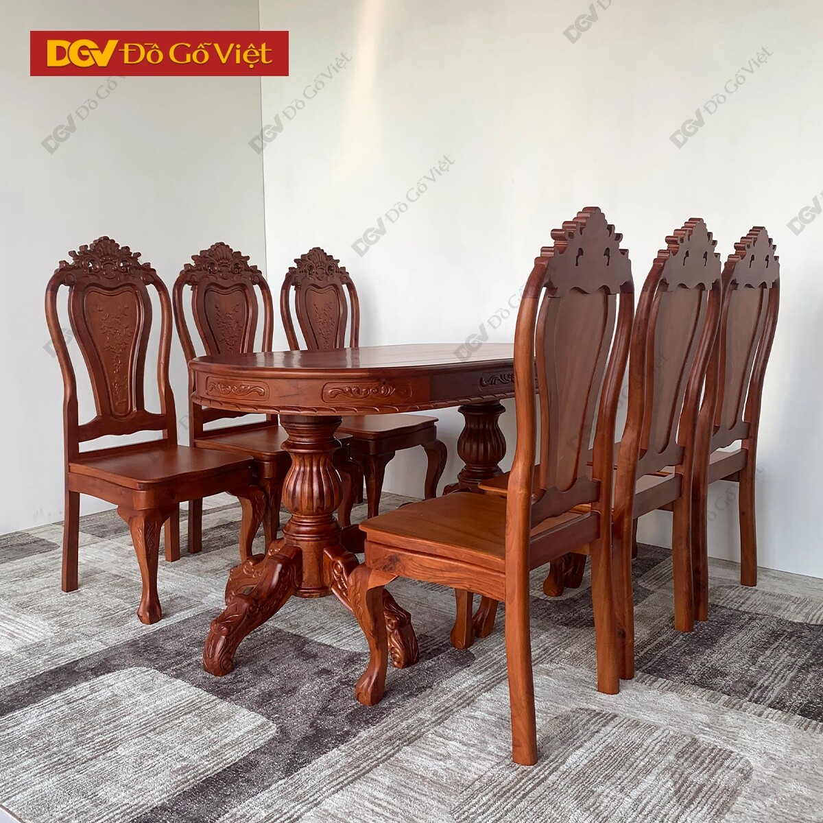 Bộ Bàn Ăn Oval Gỗ Gõ Đỏ Chân Trụ 1m9 8 Ghế