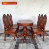 Bộ Bàn Ăn Gỗ Gõ Đỏ Tròn Cạnh Chân Chữ U Bo Cong Cách Điệu