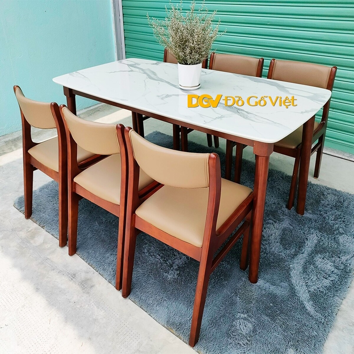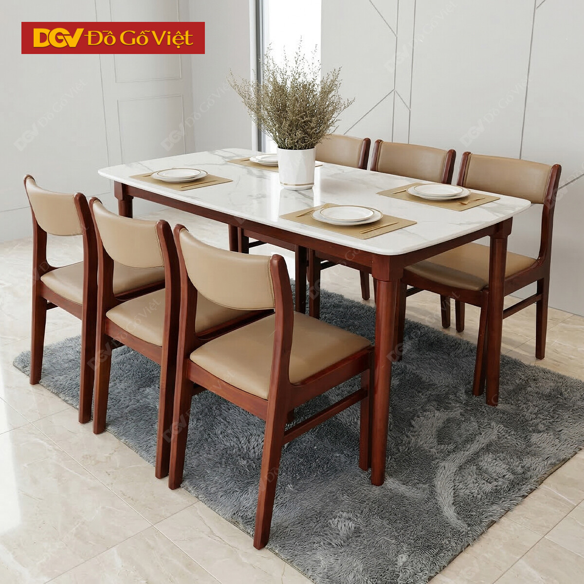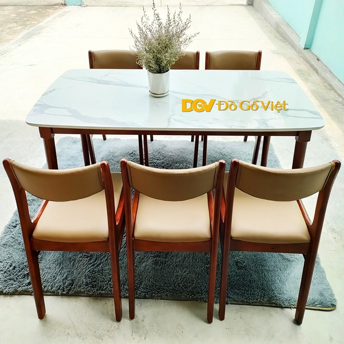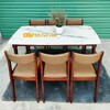 Bộ Bàn Ăn Hiện Đại Mặt Giả Đá 6 Ghế Màu Nâu Mặt Nệm