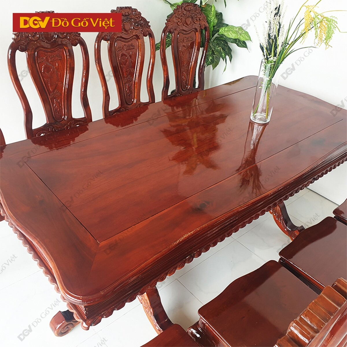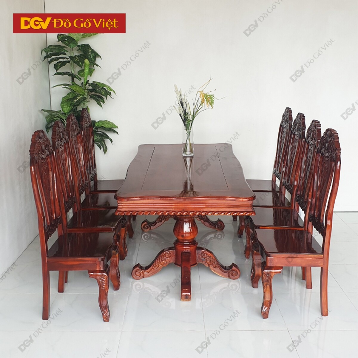 Bộ Bàn Ăn Tràm Mặt Hồng Đào Bánh Tây Cổ Điển 1m8 8 Ghế