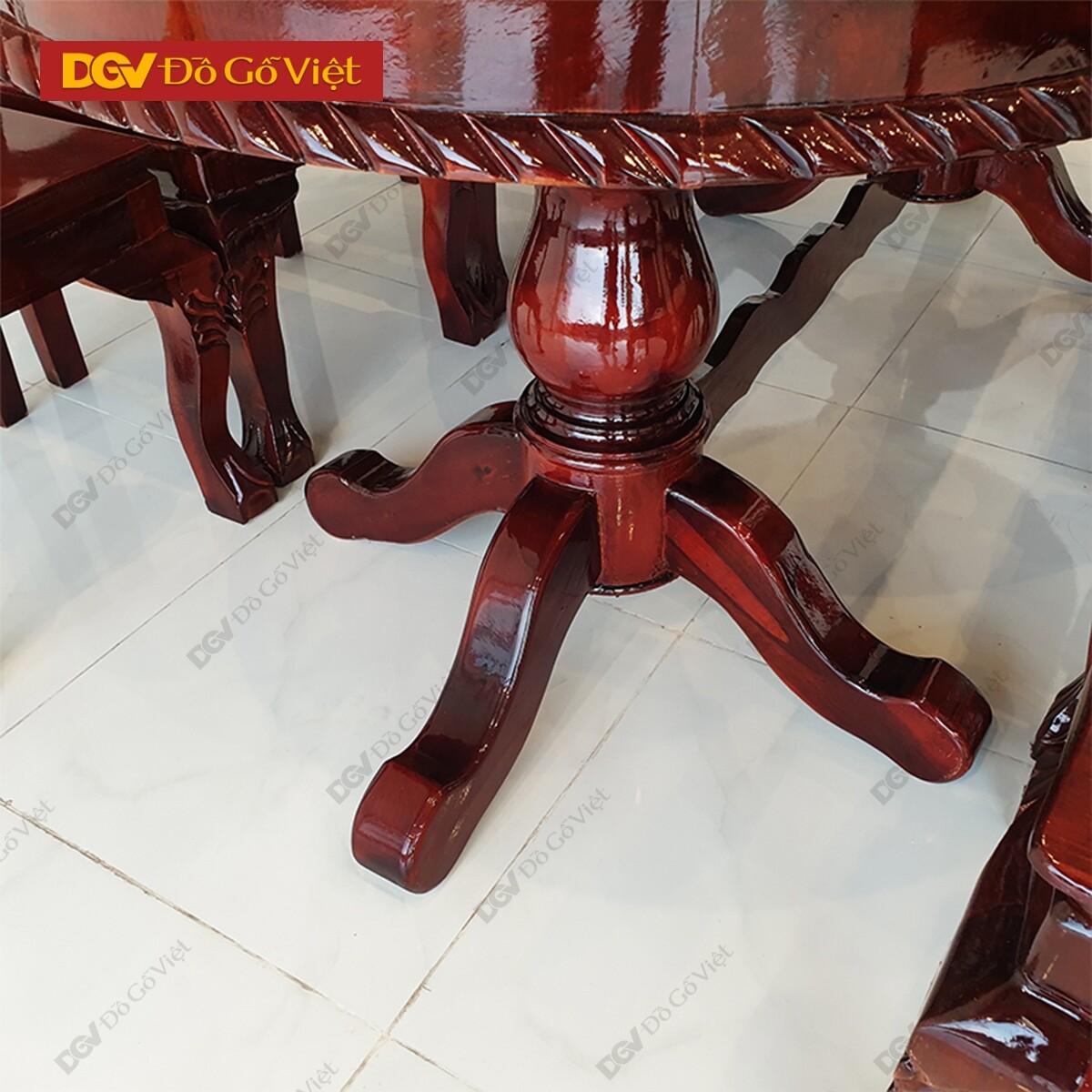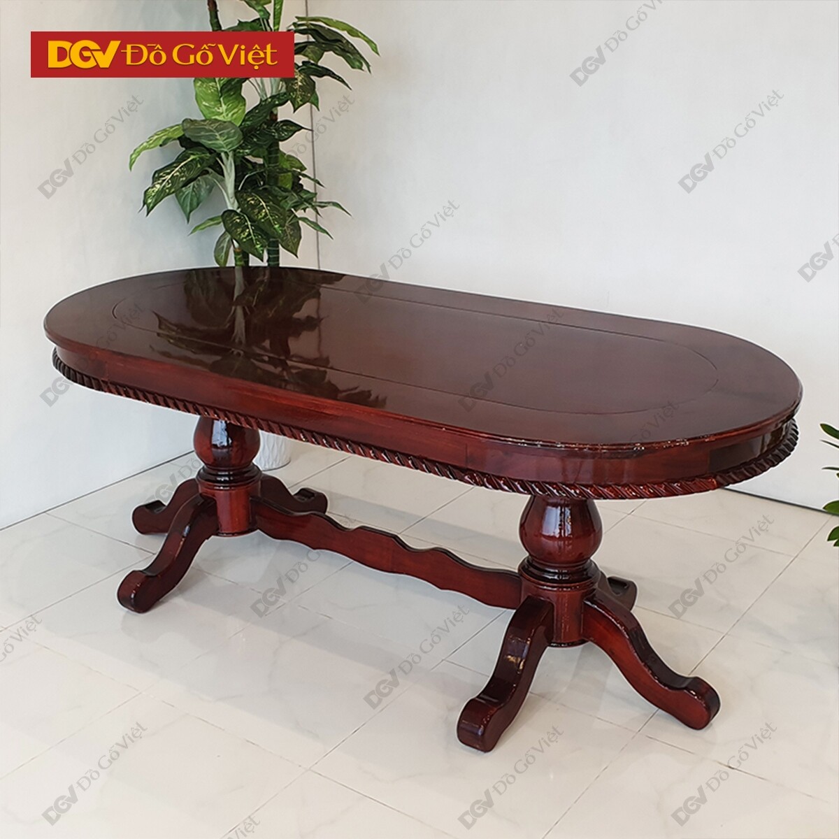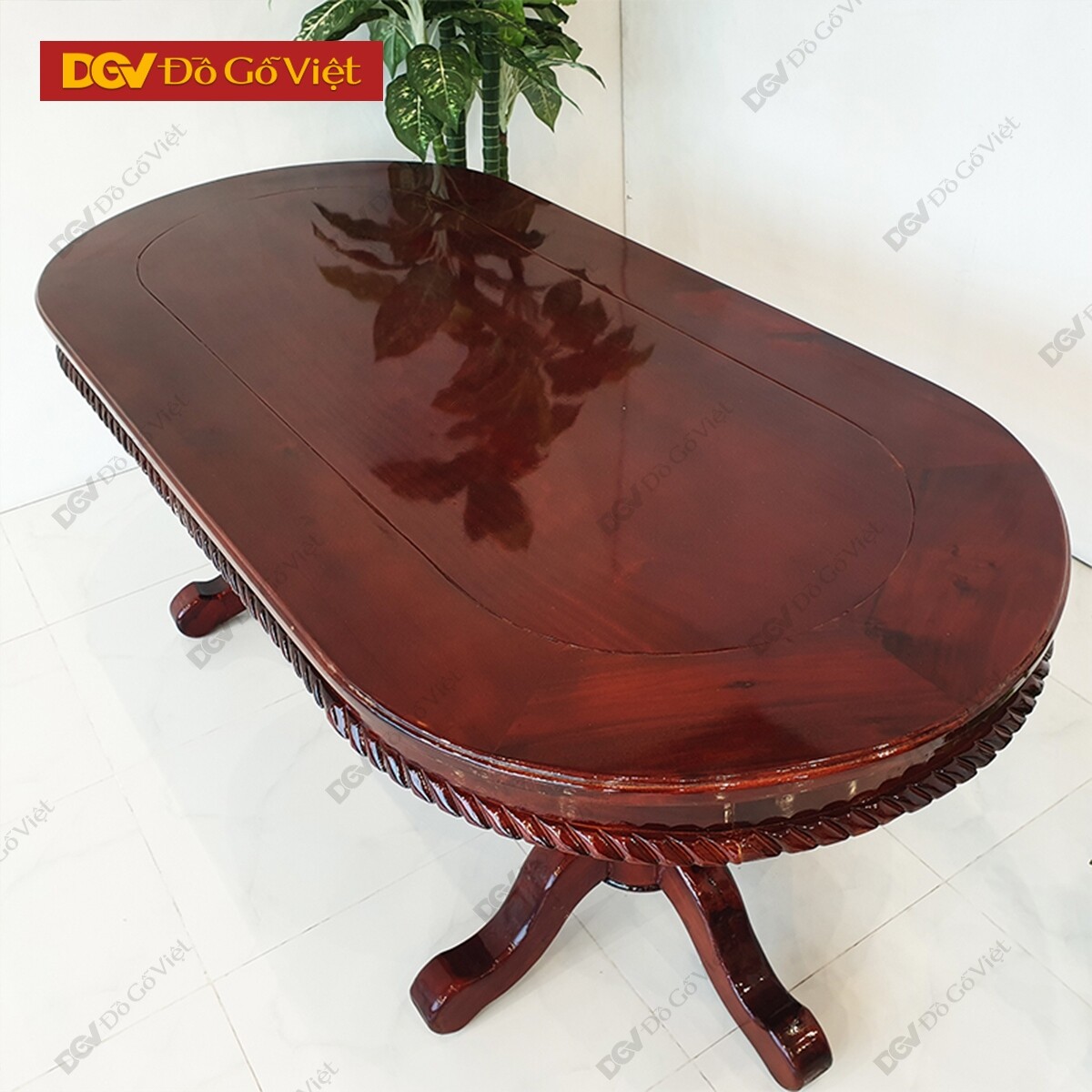 Bộ Bàn Ăn Tràm Mặt Hồng Đào Oval 8 Ghế Chạm Hoa Tây Đẹp