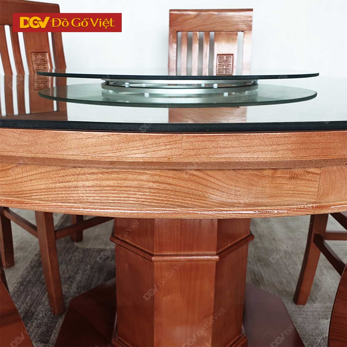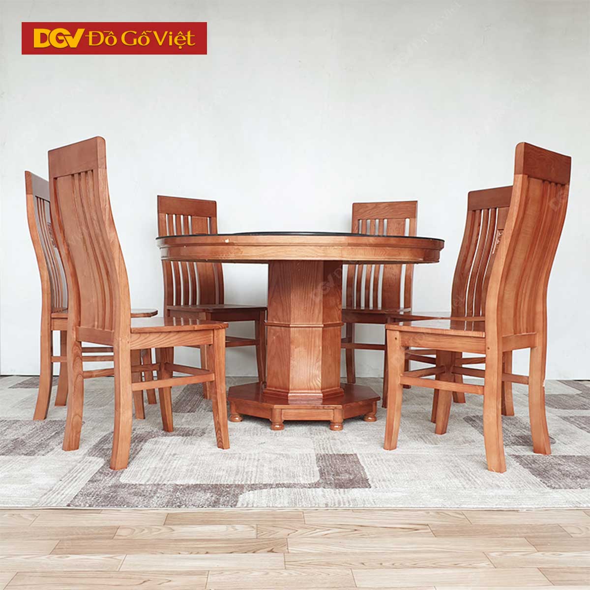 Bàn Ăn Tròn Mâm Xoay Gỗ Sồi Màu Nâu 6 Ghế Giá Tốt TPHCM