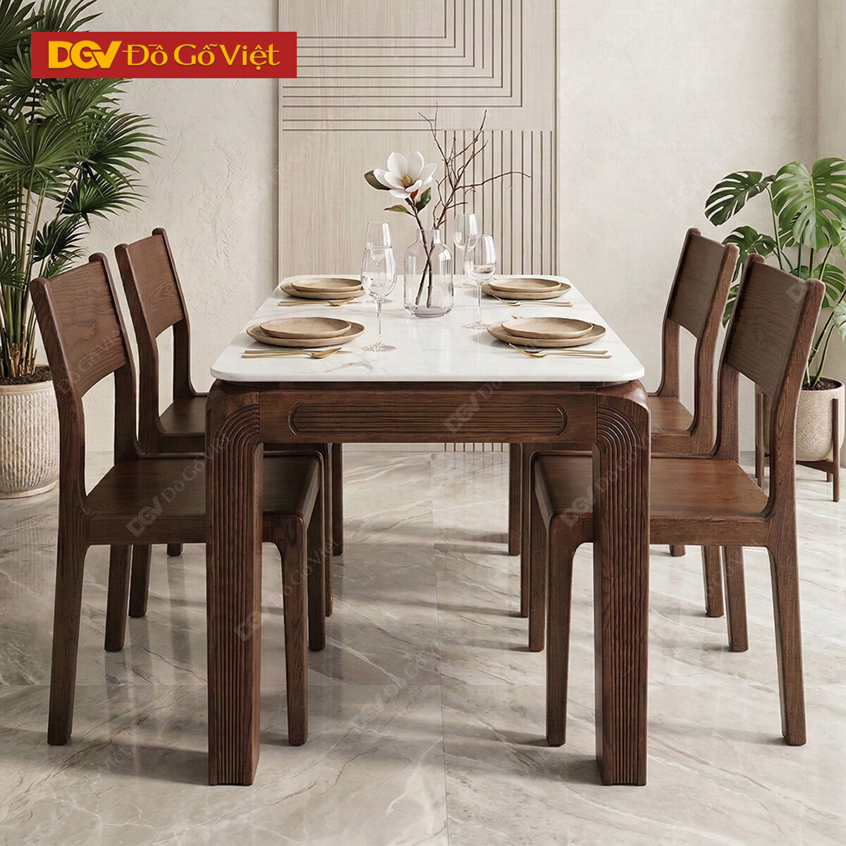Bộ Bàn Ghế Ăn Hiện Đại 4 Ghế Mặt Đá Màu Óc Chó Đẹp