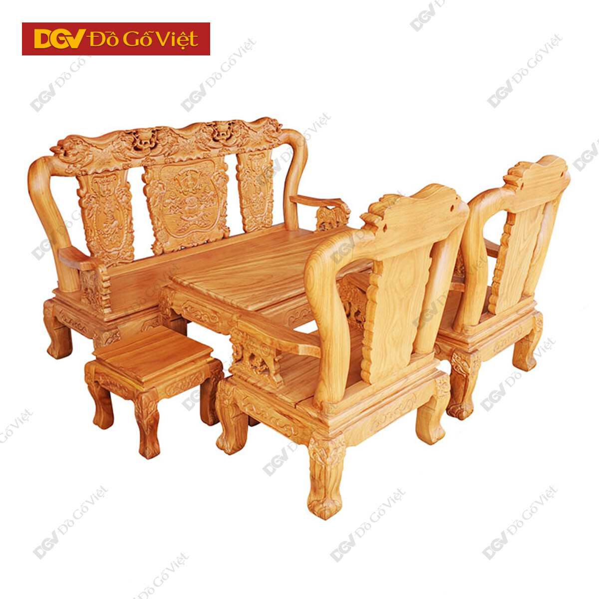 Bàn Ghế Salon Gỗ Gõ Đỏ Chạm Rồng Đỉnh Tay 12 - 6 Món