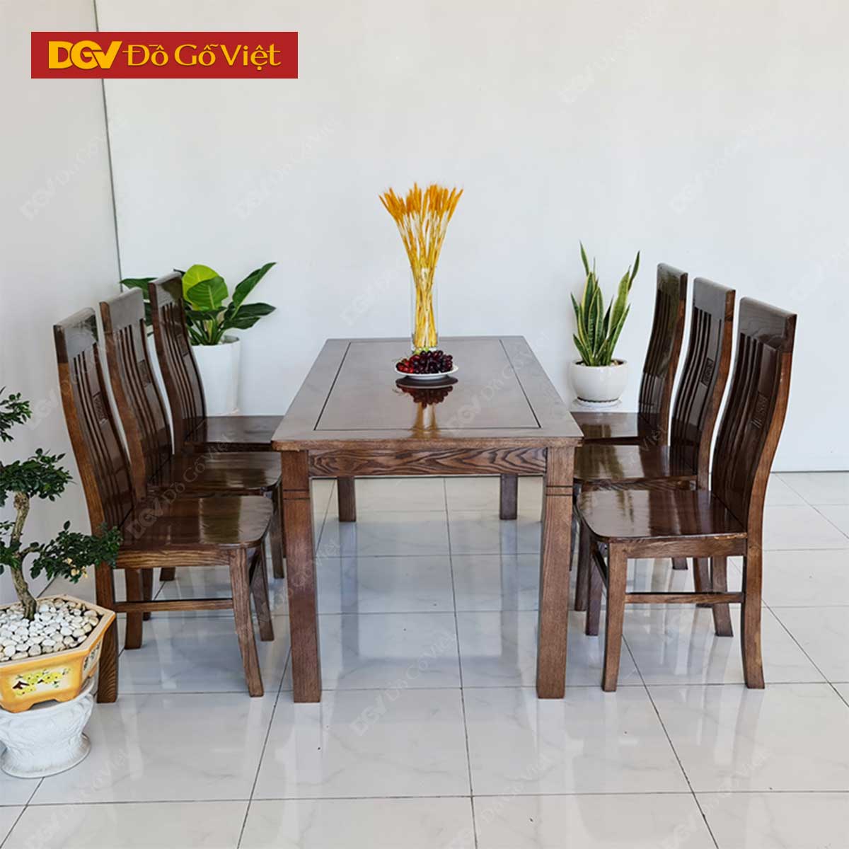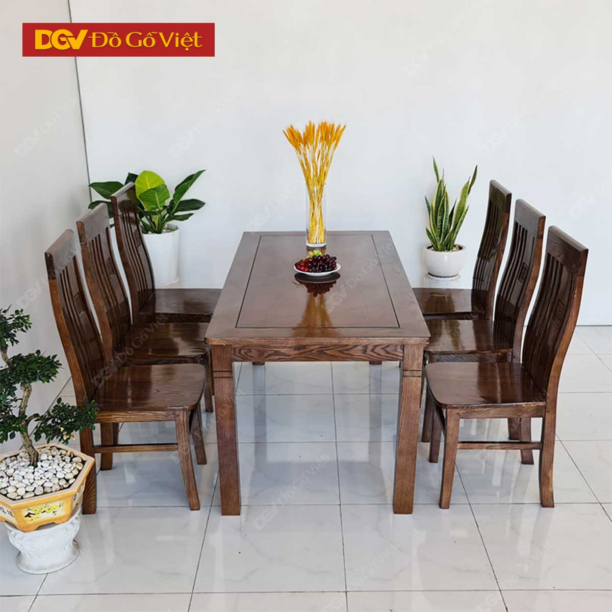 Bộ Bàn Ăn Gỗ Sồi Màu Óc Chó 6 Ghế Mẫu Mới 2025 Đẹp Giá Rẻ