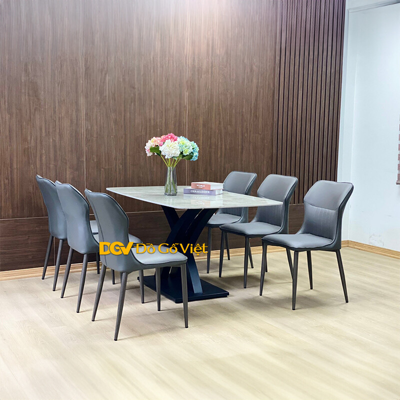 Bộ Bàn Ăn Chân Sắt Mặt Đá Bền Bỉ 6 Ghế Cho Chung Cư