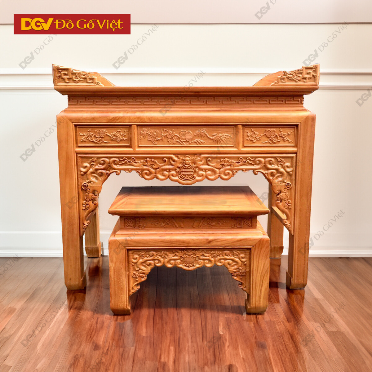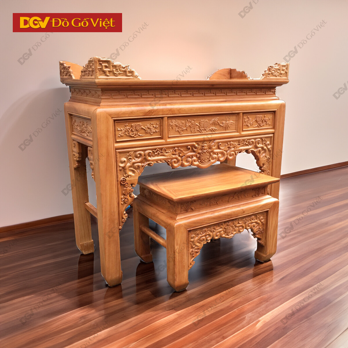 Án Gian Thờ Gỗ Gõ Đỏ 1m27 Mẫu Chạm Sen Cao Cấp