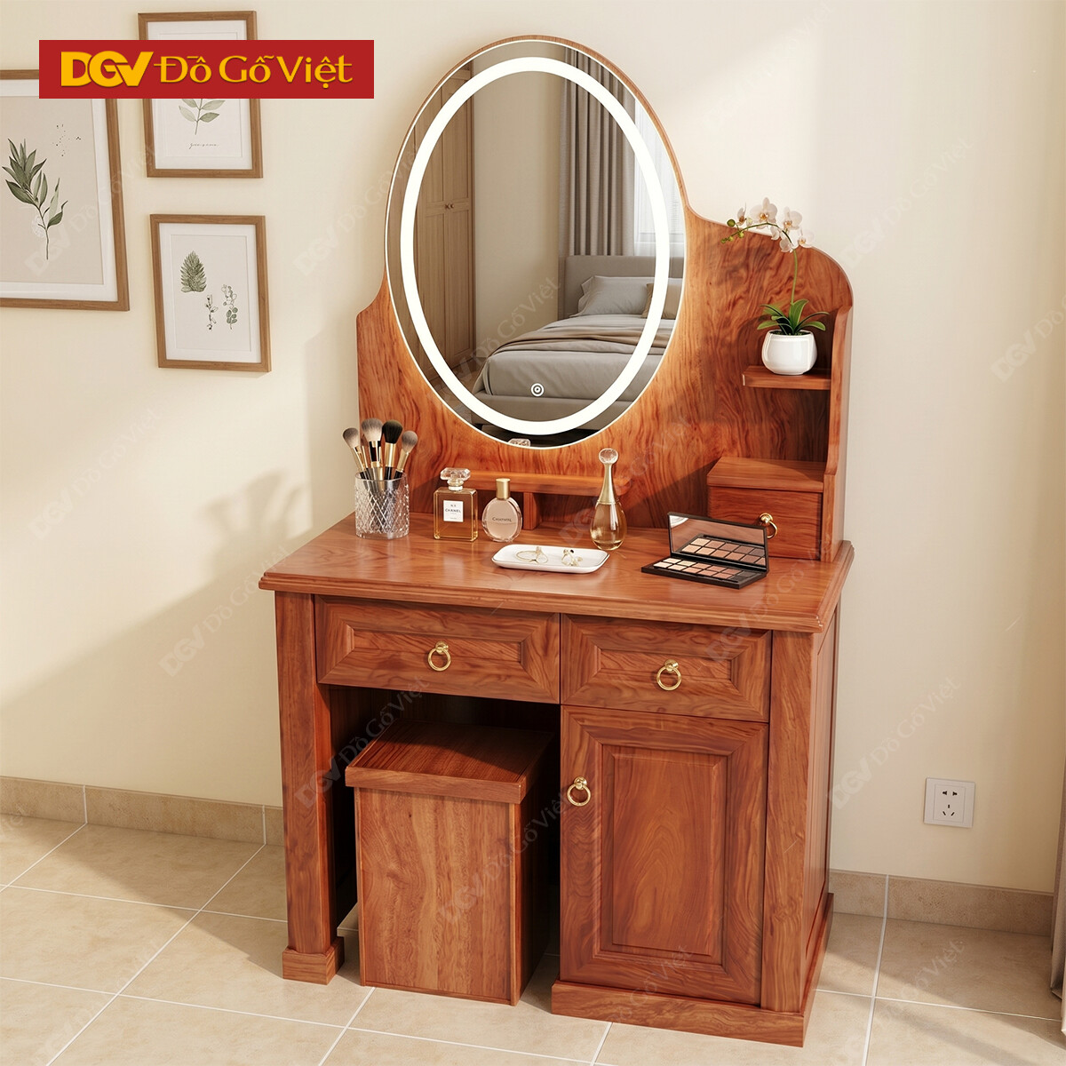 Bộ Bàn Trang Điểm Gỗ Hương Đá Gương Oval Viền Led Đẹp