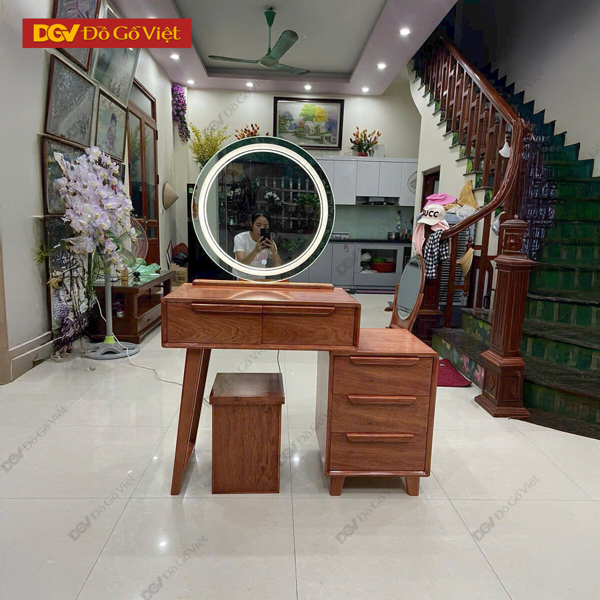 Bàn Trang Điểm 2 Thùng Gỗ Hương Đá Cao Cấp