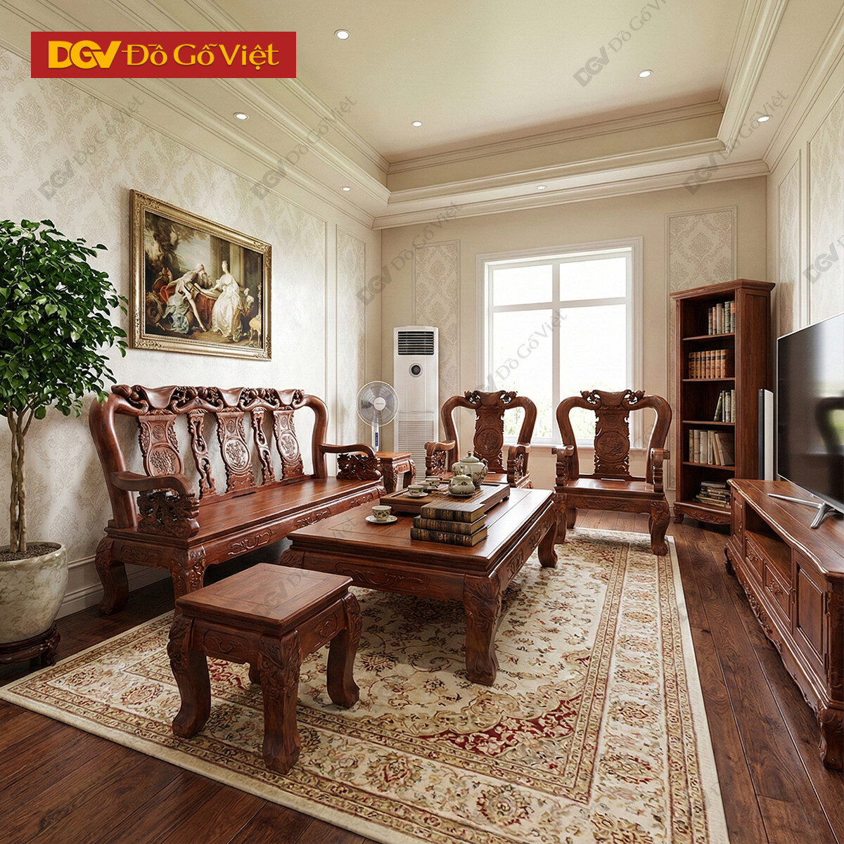 Bàn Ghế Phòng Khách Gỗ Xoan Đào Chạm Nghê Tay 12 6 Món