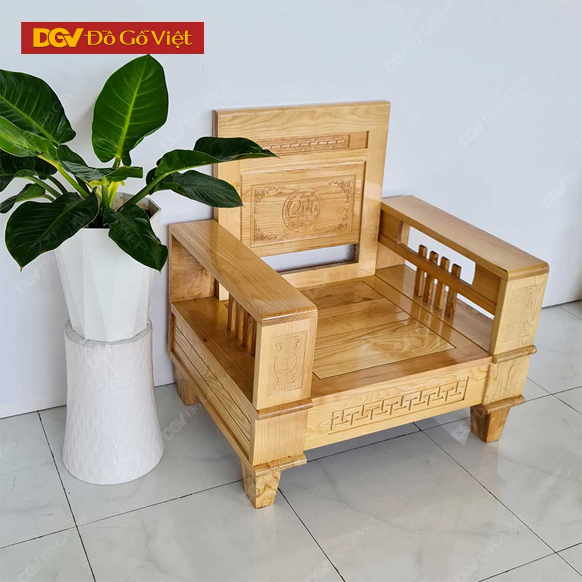 Sofa Gỗ Sồi Mỹ Tối Giản Hiện Đại Lưng Ghế Nan Dọc