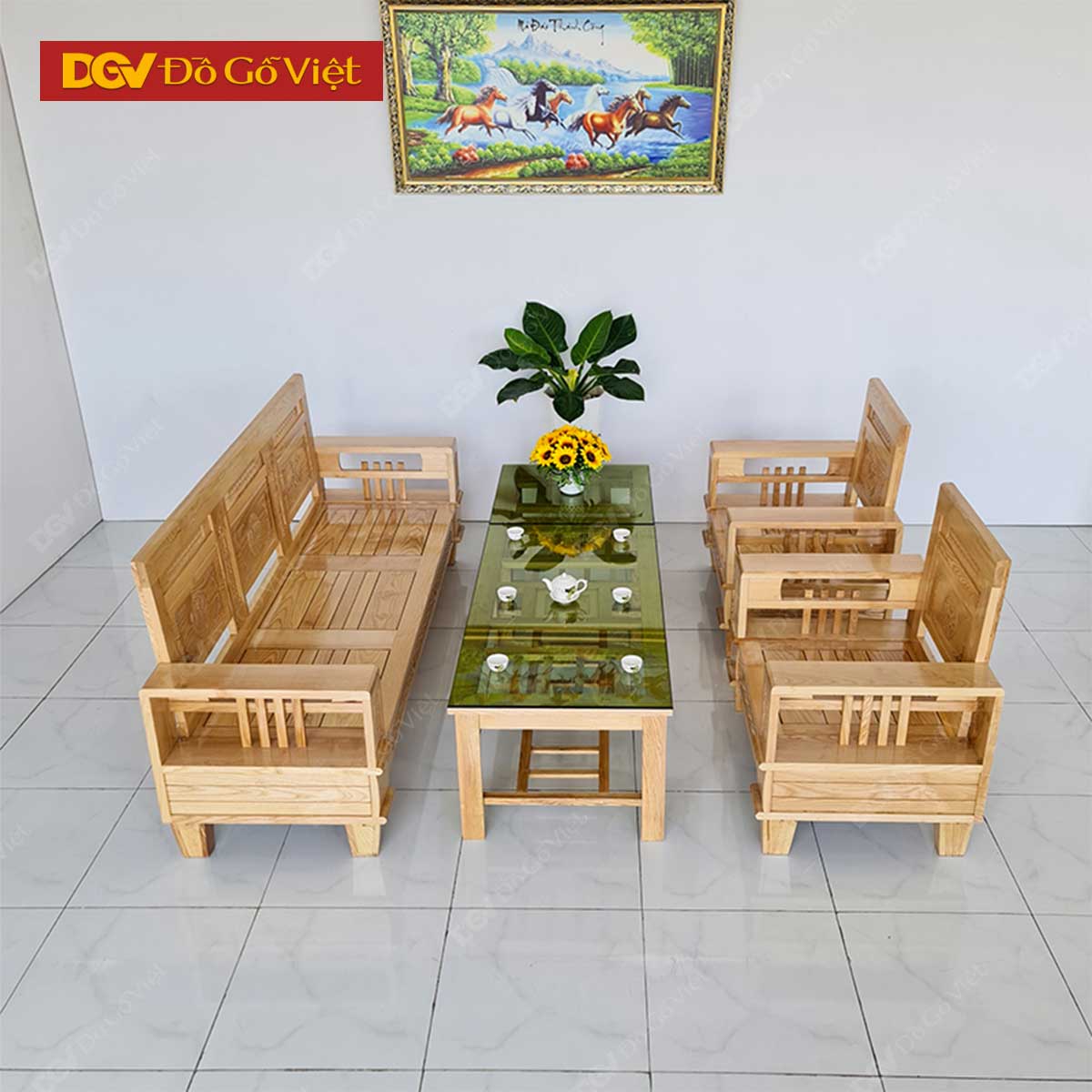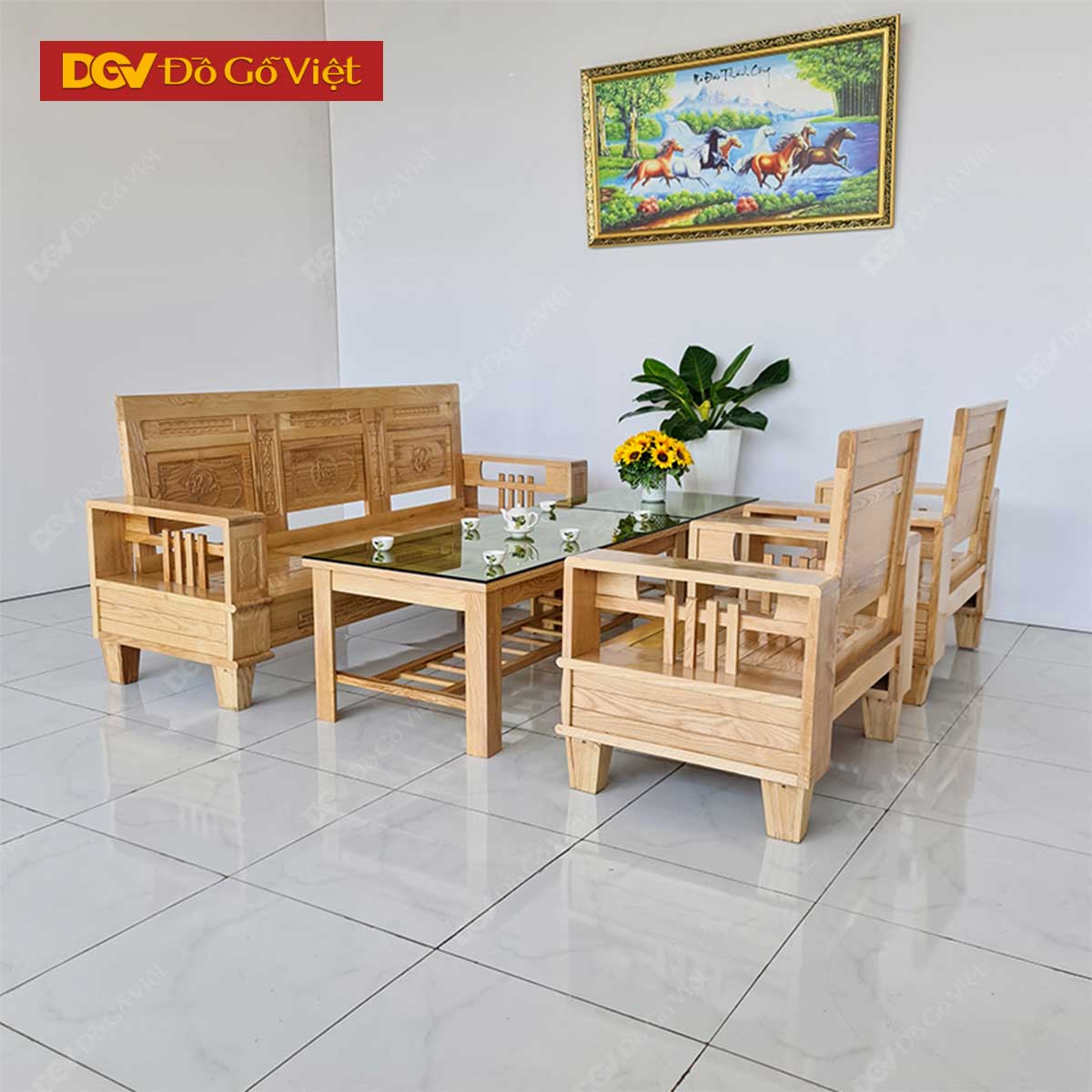Bộ Sofa Đối Gỗ Sồi Nga 5 Món Màu Tự Nhiên Đẹp Giá Tốt