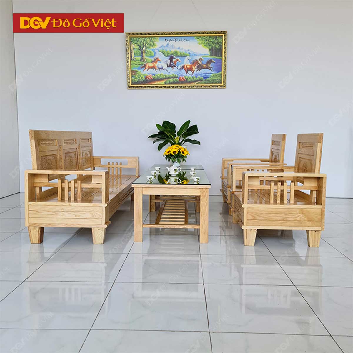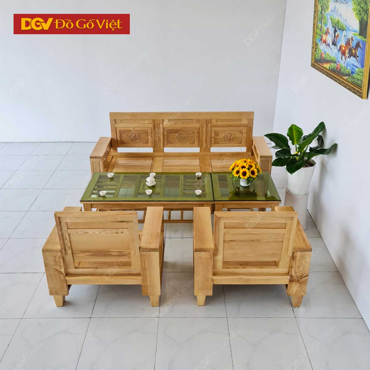 Bộ Sofa Đối Phòng Khách Gỗ Sồi Nga 5 Món Đẹp Giá Tốt