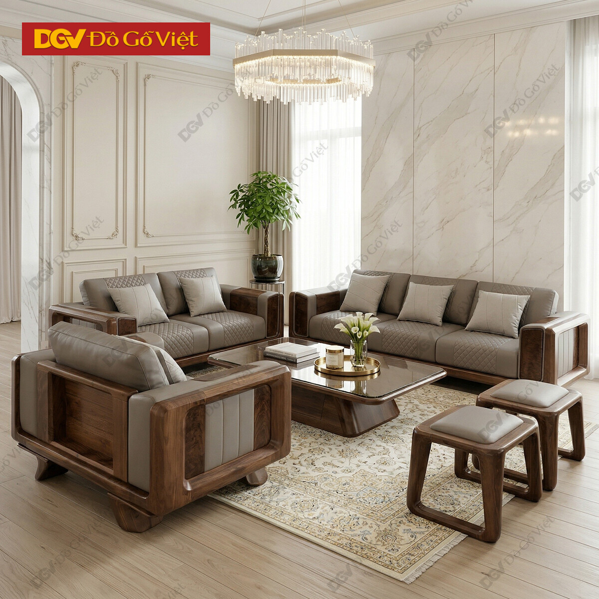 Bộ Sofa Gỗ Óc Chó Hiện Đại Bo Góc