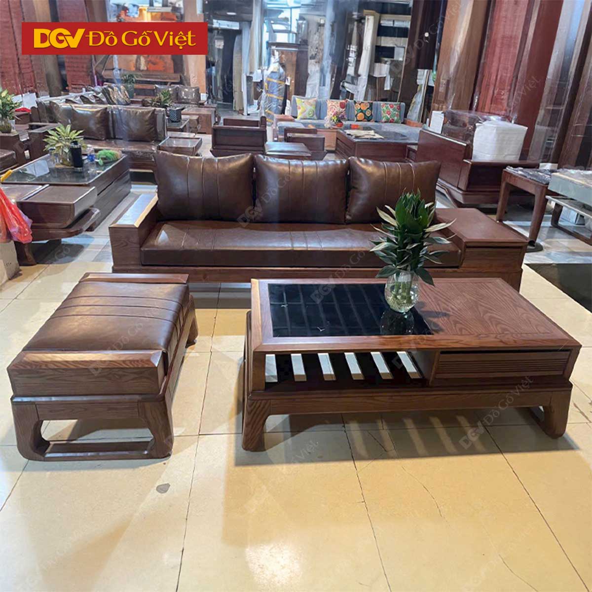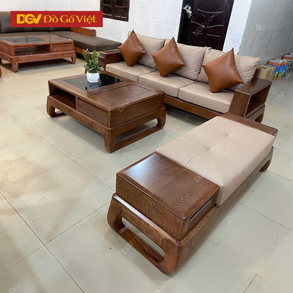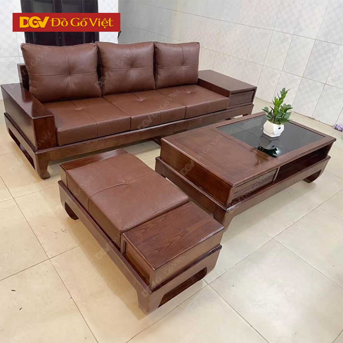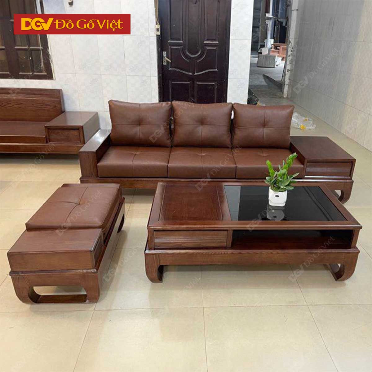 Bộ Sofa Gỗ Sồi Tự Nhiên Màu Óc Chó Có Nệm Đẹp Giá Rẻ