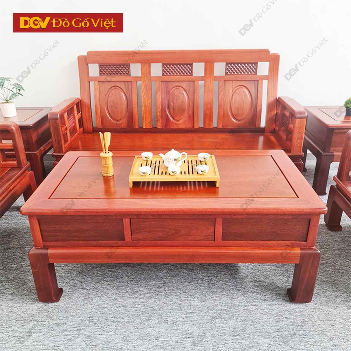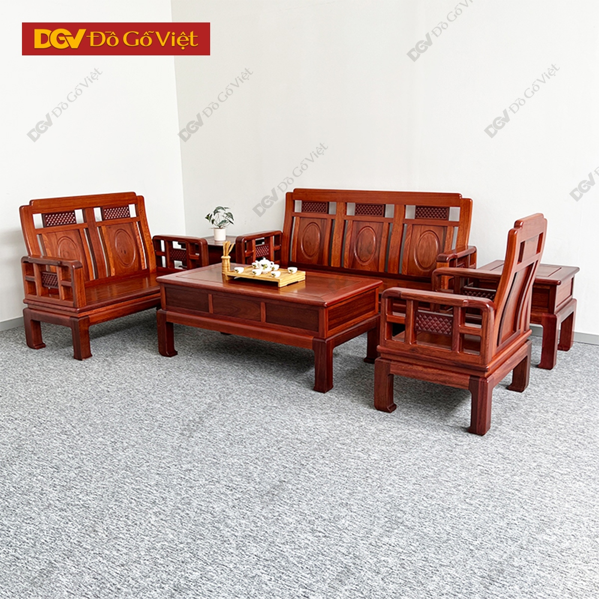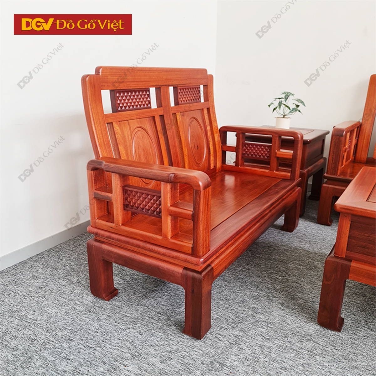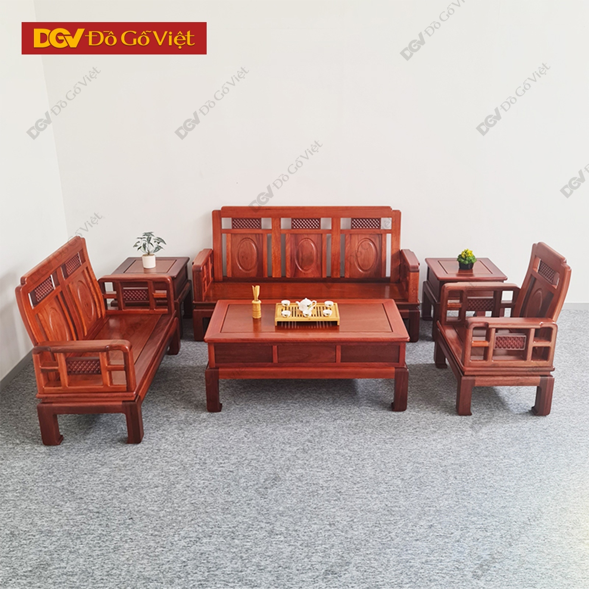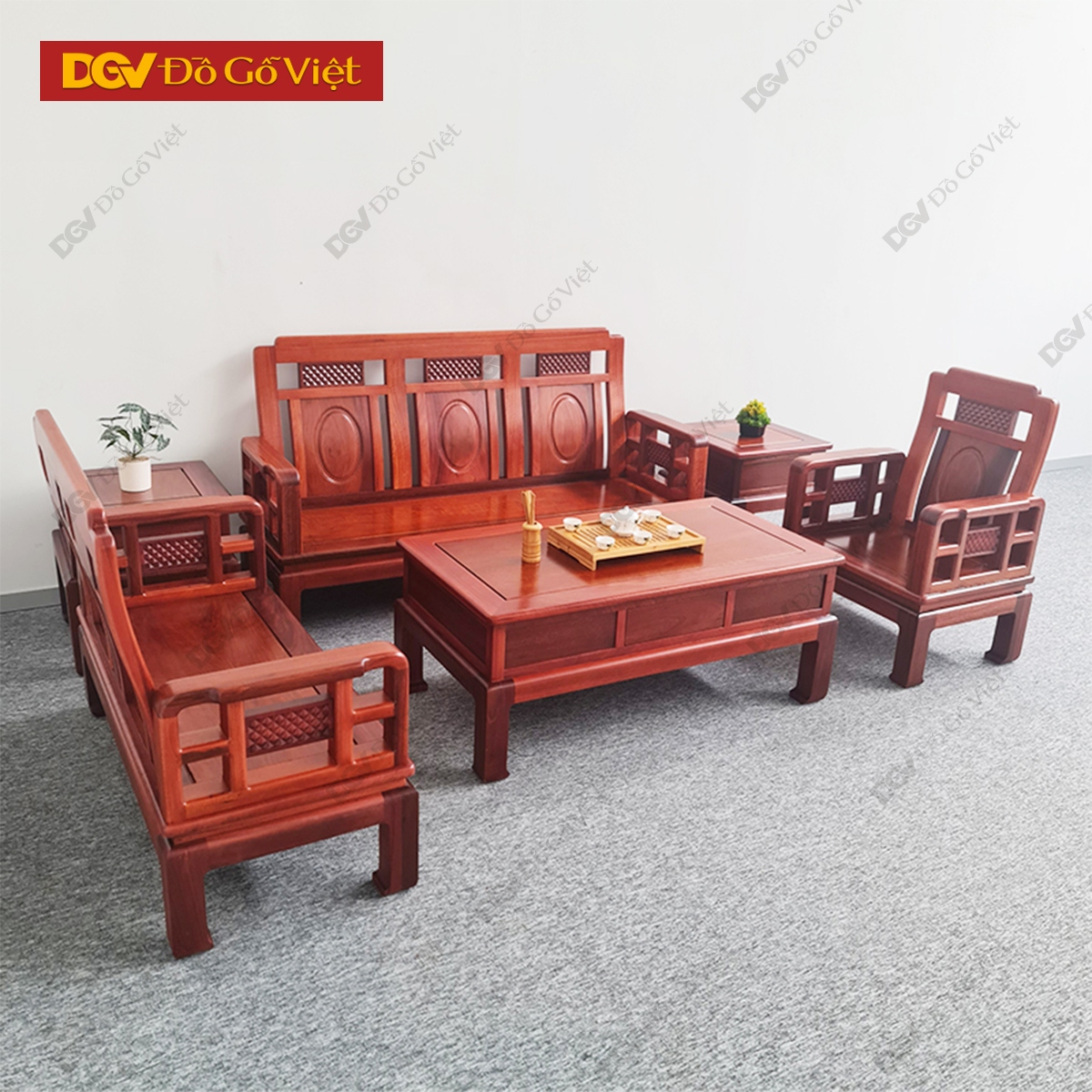 Sofa Gỗ Căm Xe Đối 5 Món Màu Nâu Cho Chung Cư Lớn