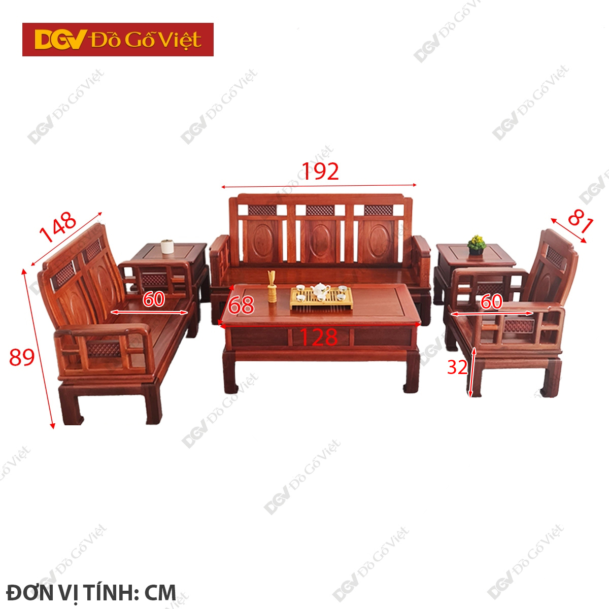 • Bàn trà: Dài 128cm x Rộng 68cm x Cao 46cm.