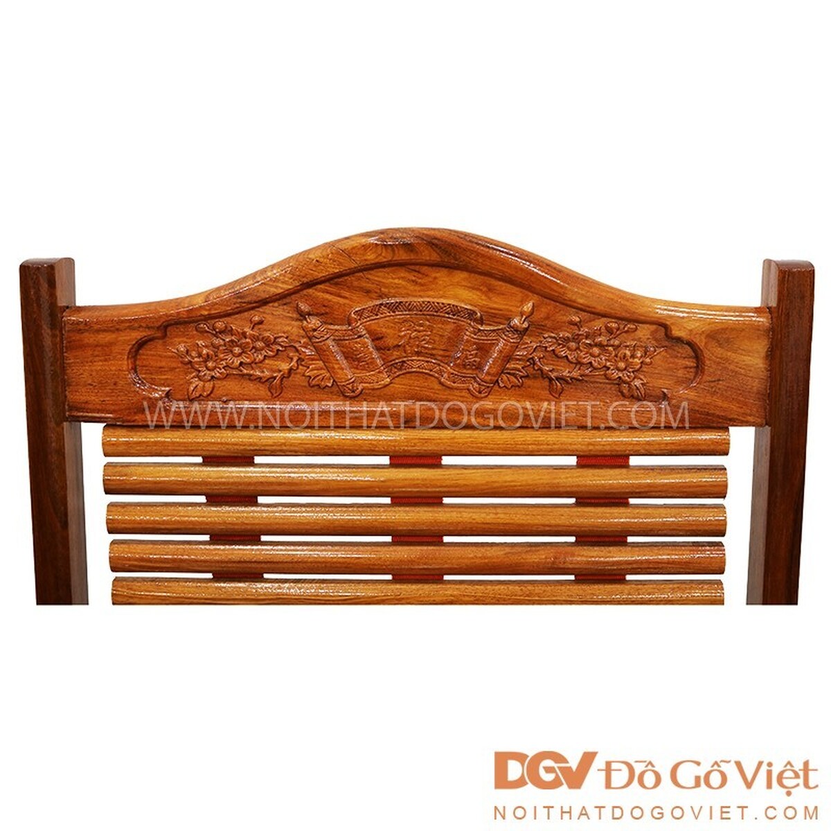 Phần đỉnh ghế được trang trí hoa văn cuốn thư kết hợp hoa lá nhỏ, những hình ảnh mang đặc trưng của nghệ thuật tạo hình dân gian được sắp xếp hợp lý, chạm trổ tinh xảo chi tiết tôn vinh giá trị thẩm mỹ cổ điển mang đến sự đẳng cấp cho không gian sống.