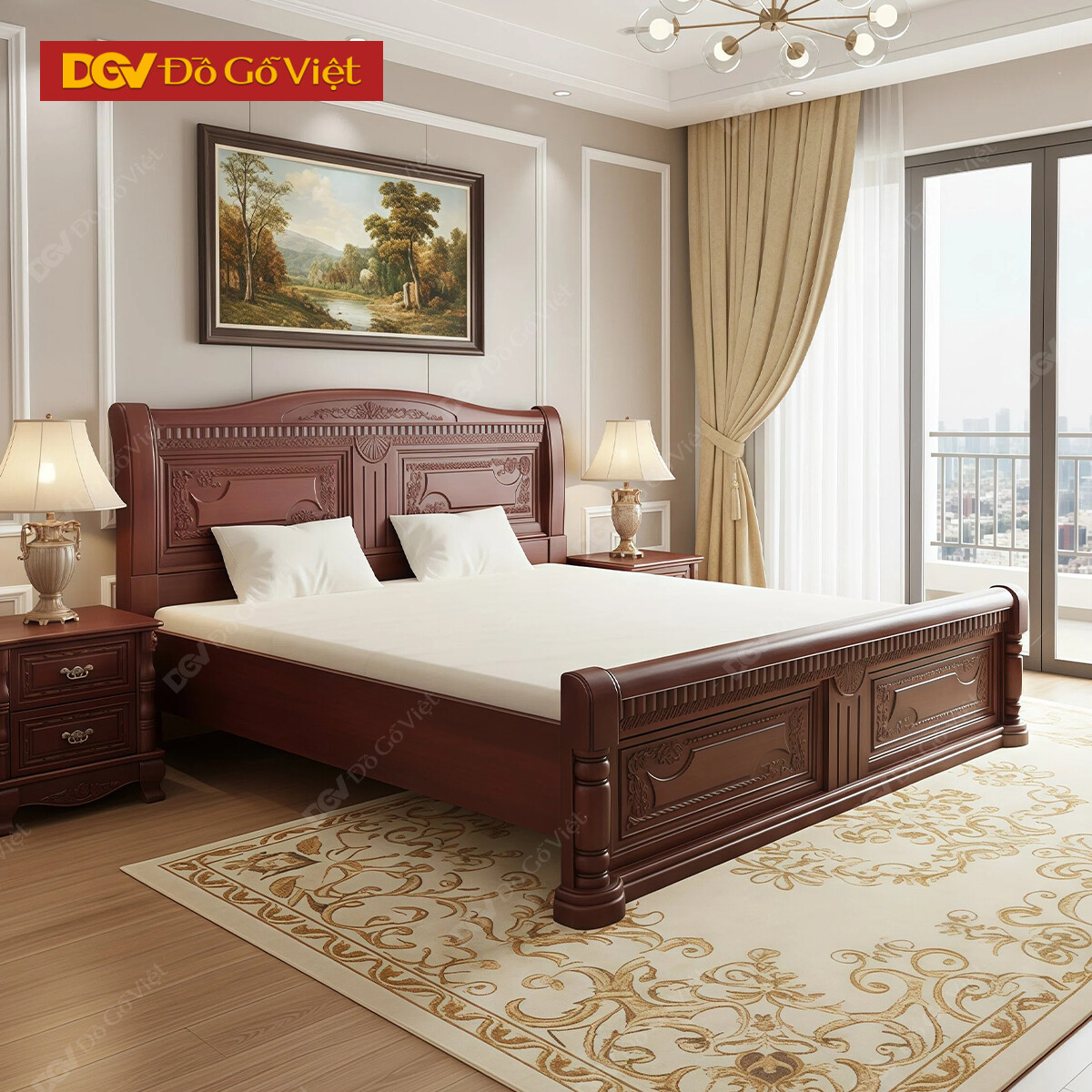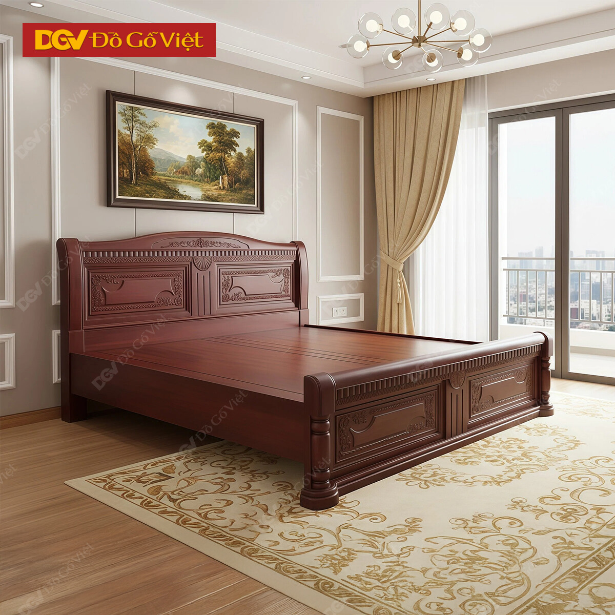 Giường Gỗ Căm Xe 1m6 Mẫu Pano Chạm Hoa Lá Tây