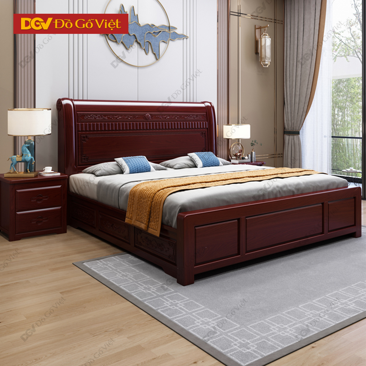 Giường Gỗ Căm Xe Màu Nâu Đỏ Họa Tiết Sang Trọng Tinh Tế