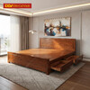 2 hộc kéo giường có kích thước 85 x 40cm khá rộng rãi để khách hàng có thể sắp xếp đồ dùng, hộc kéo có gắn ray trượt chuyên dụng giúp thao tác nhanh chóng, vận hành mượt mà, êm ái.