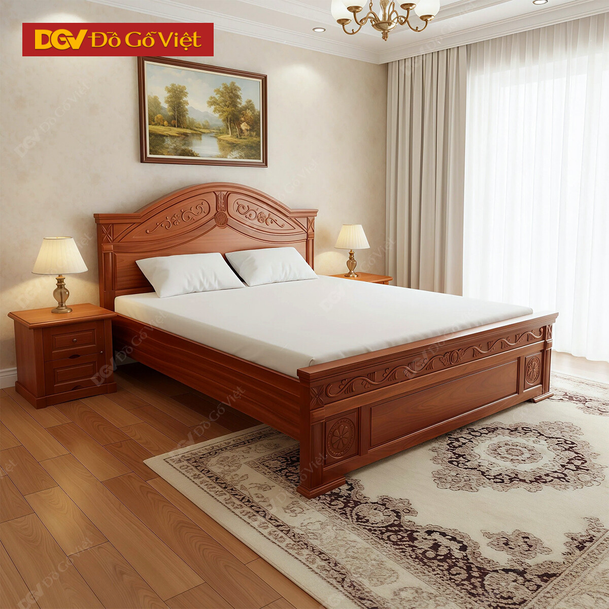 Giường Ngủ Xoan Đào Mẫu Nữ Hoàng Chạm Hoa Truyền Thống