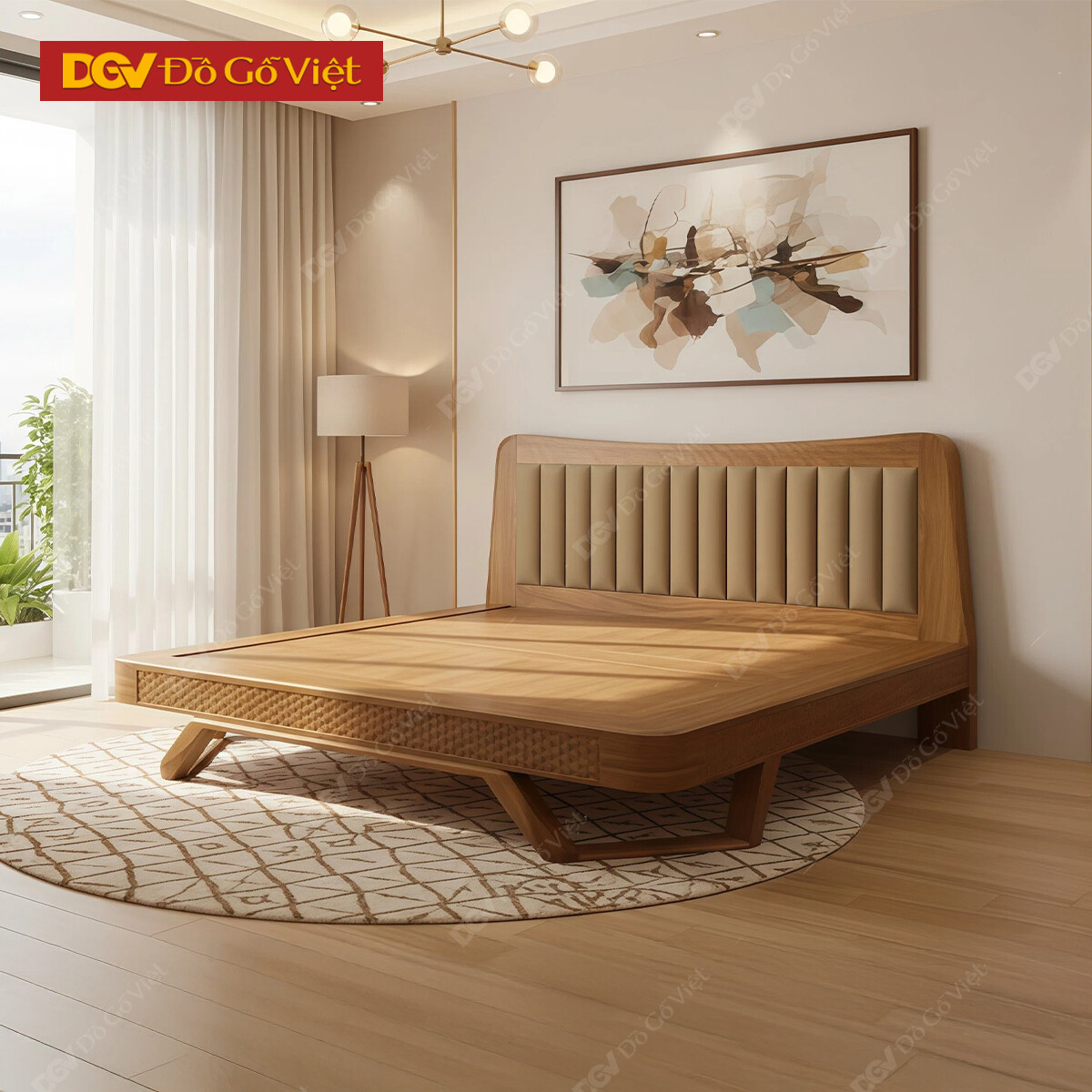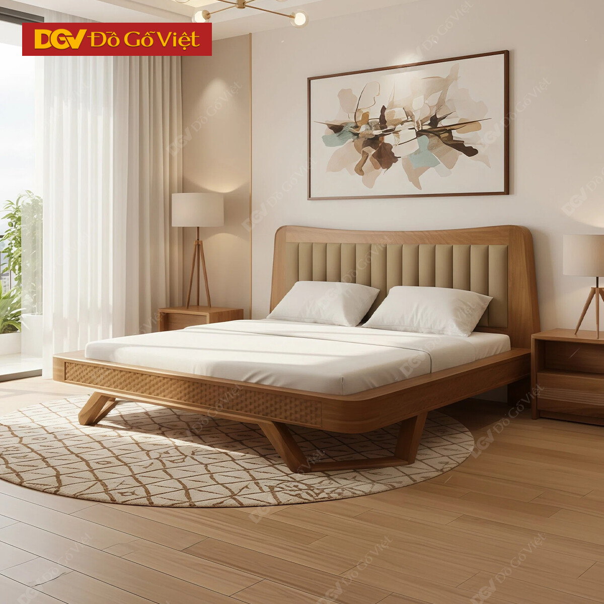 Giường Gỗ Hiện Đại Kiểu Đầu Bằng Chạy Chỉ Đẹp Tinh Tế