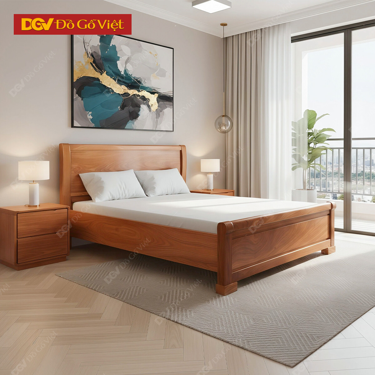 Giường Ngủ Gỗ Chân Quỳ Vân Gõ Đẹp Mới 2026