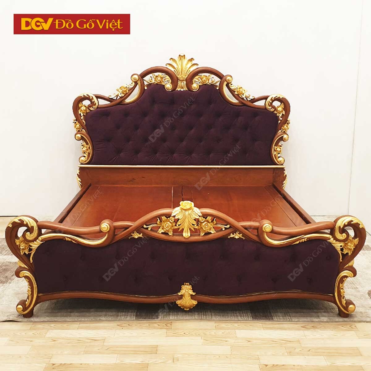 Đuôi giường thiết kế đối xứng với các họa tiết bố trí đều nhau tạo nên sự hài hòa cho tổng thể. Với điểm nhấn ấn tượng nhất chính là những bông hoa hồng nở rực rỡ mang lại sự sinh động và vui tươi cho không gian bày trí.