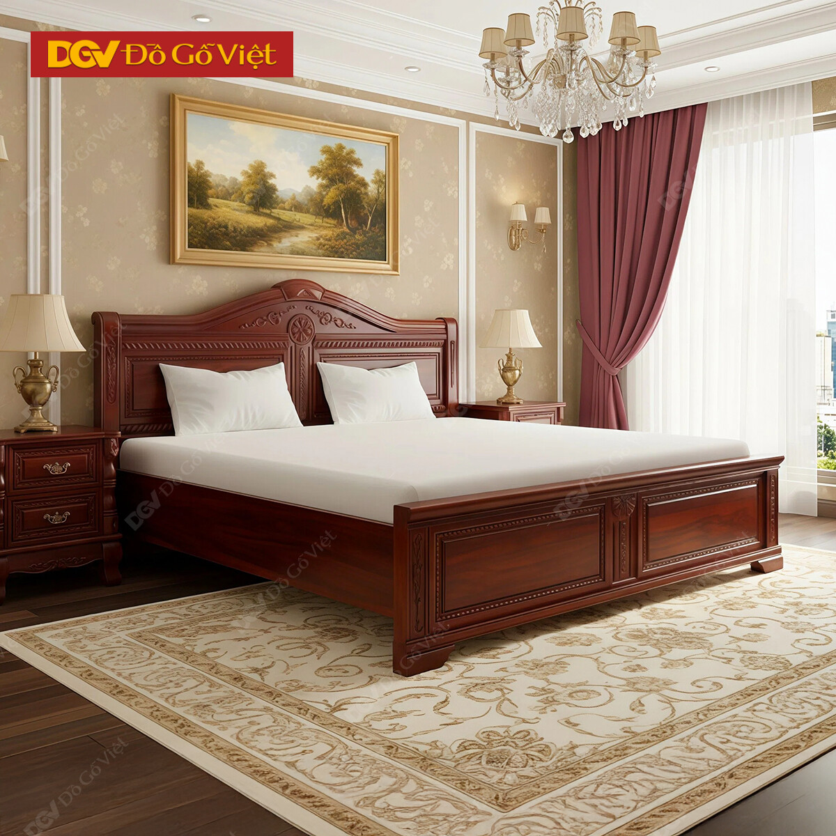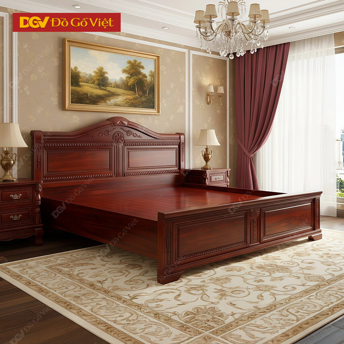 Giường Ngủ Gỗ Cẩm Chạm Hoa Văn Phong Cách Tân Cổ Điển