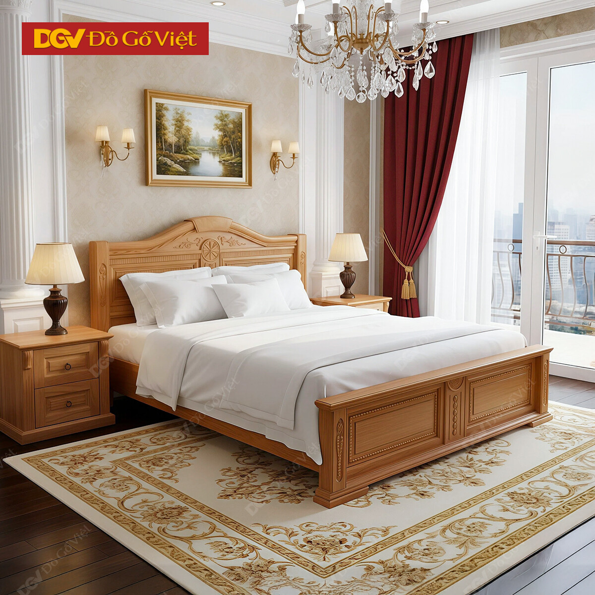 Giường Ngủ Gỗ Chân Quỳ Vân Gõ Đẹp Mới 2026