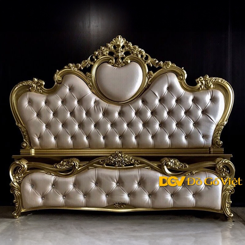 Giường Ngủ Gỗ Công Nghiệp Cổ Điển Màu Vàng Nệm Xám Đẹp Giá Tốt