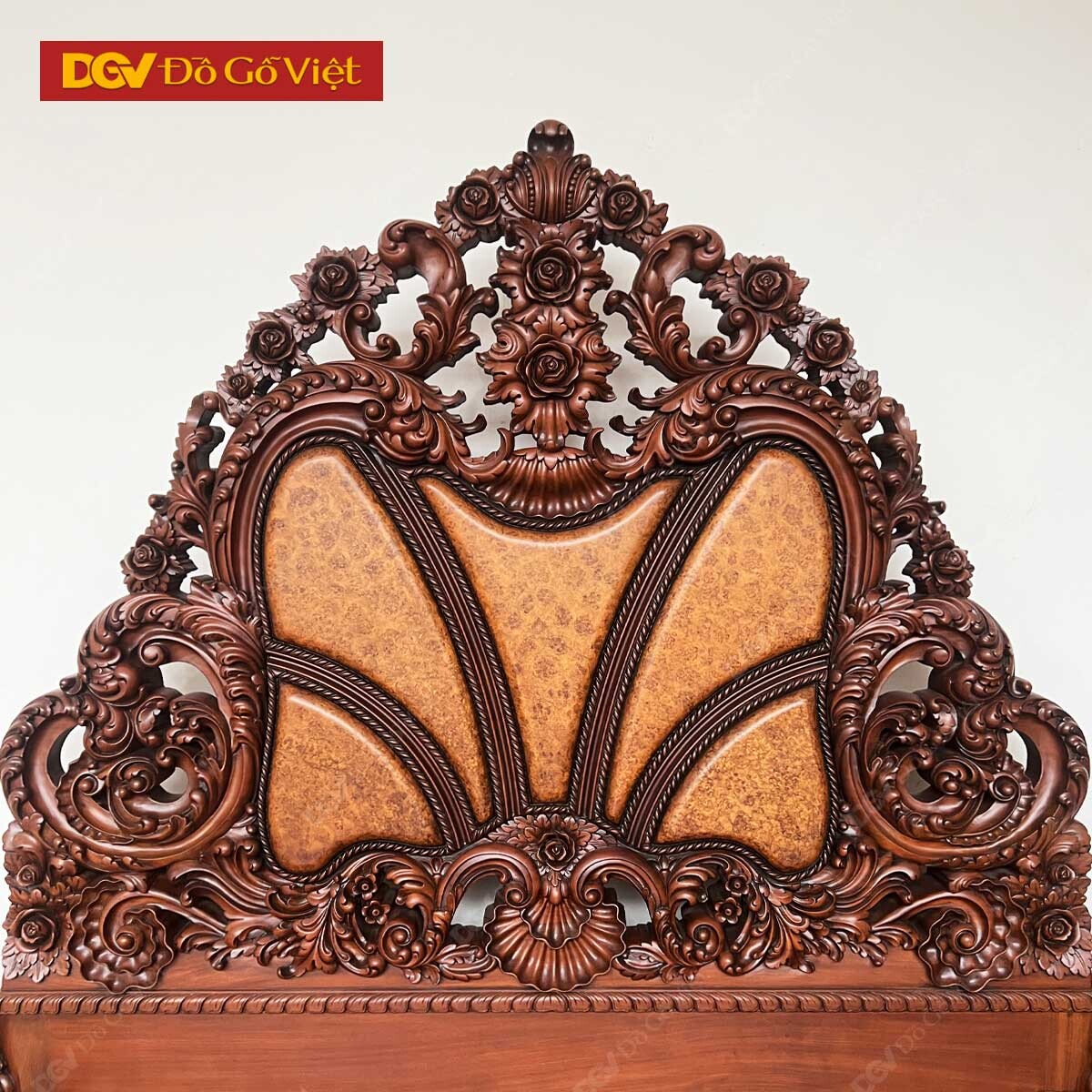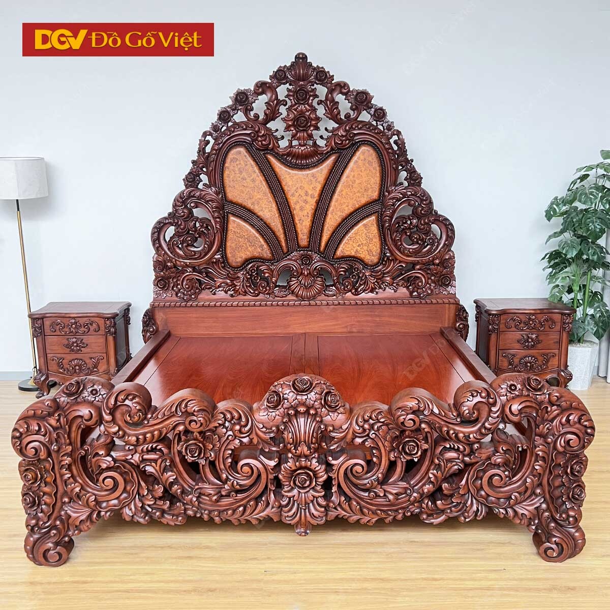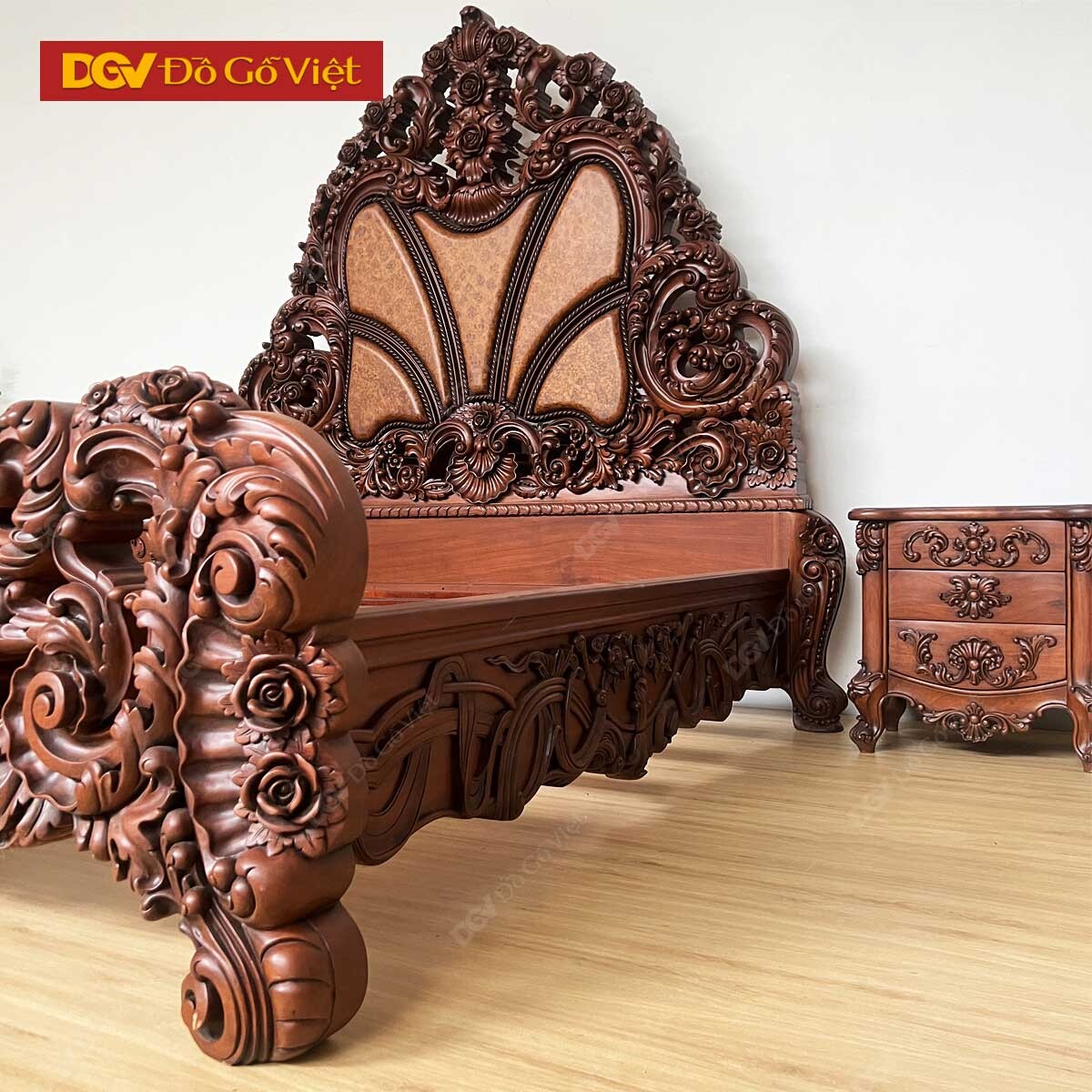 Giường Ngủ Gỗ Gõ Đỏ 100% Chạm Hoa Hồng Phong Cách Cổ Điển