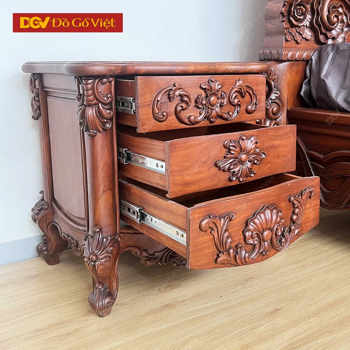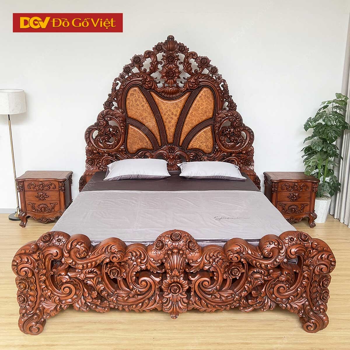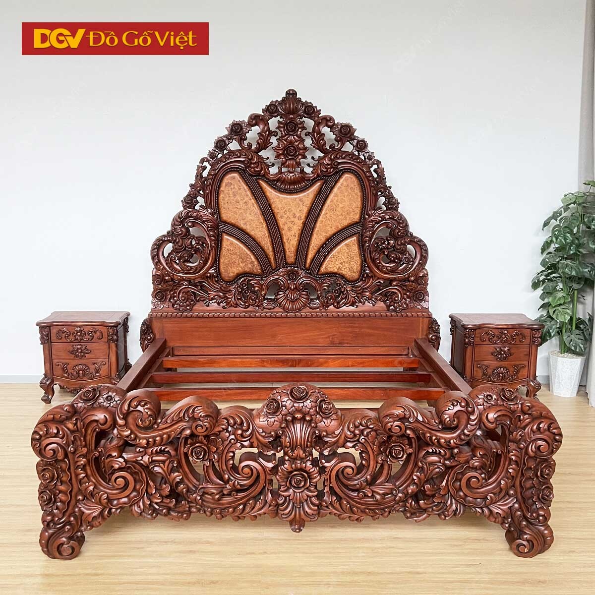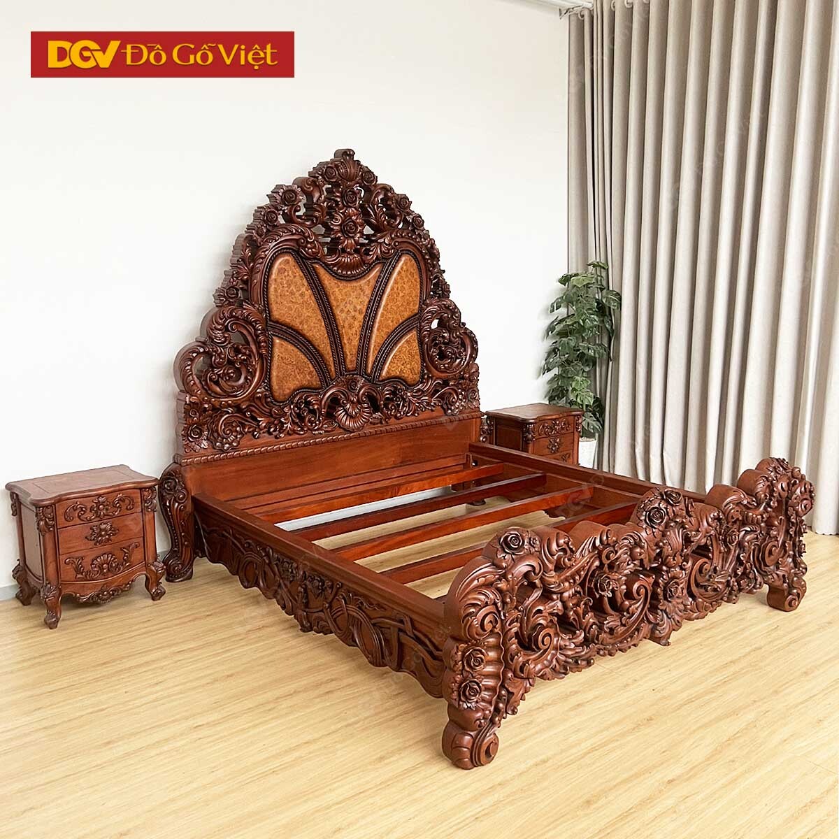 Giường Ngủ Gỗ Gõ Đỏ 100% Chạm Hoa Hồng Phong Cách Cổ Điển