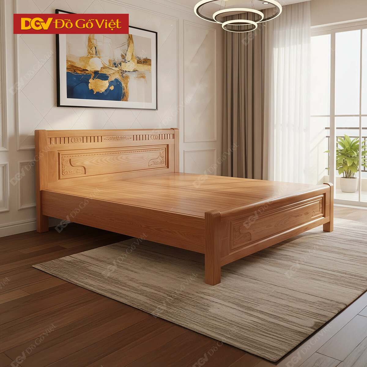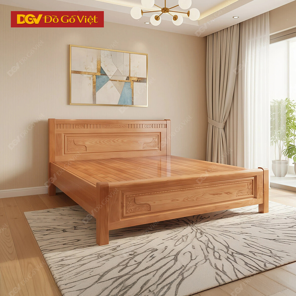 Giường Gỗ Sồi Nga Chạm Rẻ Quạt Mặt Tấm Pano Chống Cong Vênh