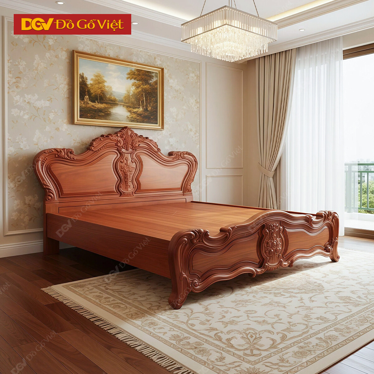 Mẫu Giường Xoan Đào Cổ Điển Chạm Lá Tây Hoàng Gia