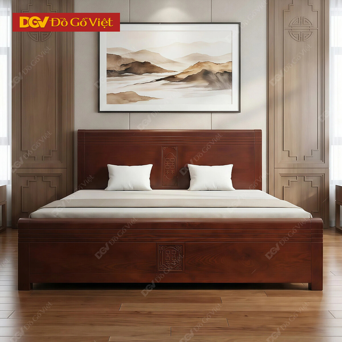Giường Ngủ Gỗ Căm Xe Khung Pano Khắc Hoa Văn Kẻ Sọc Ngang