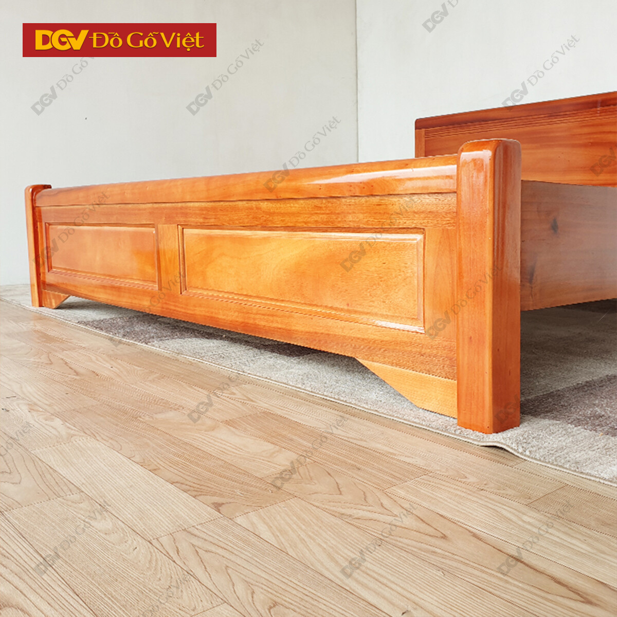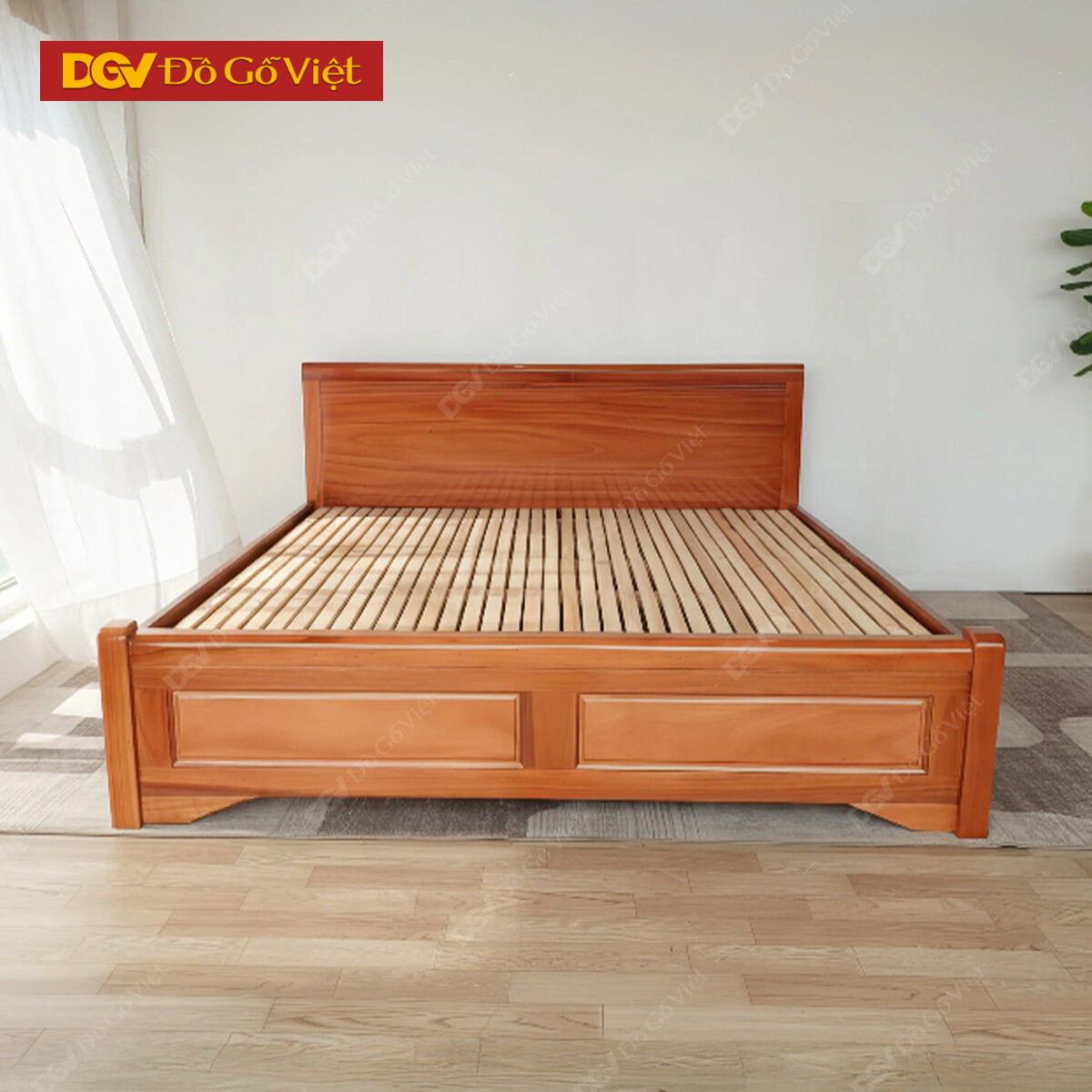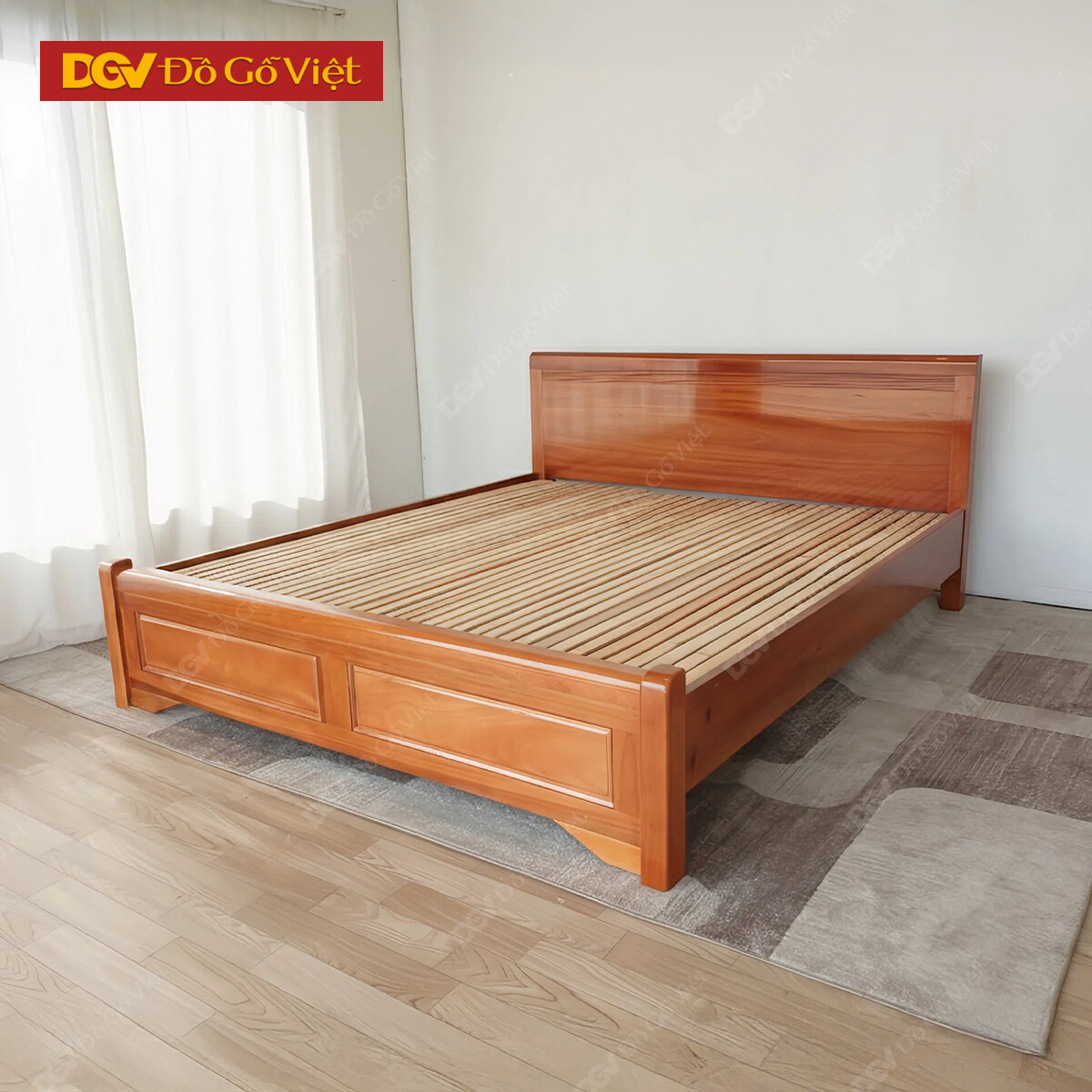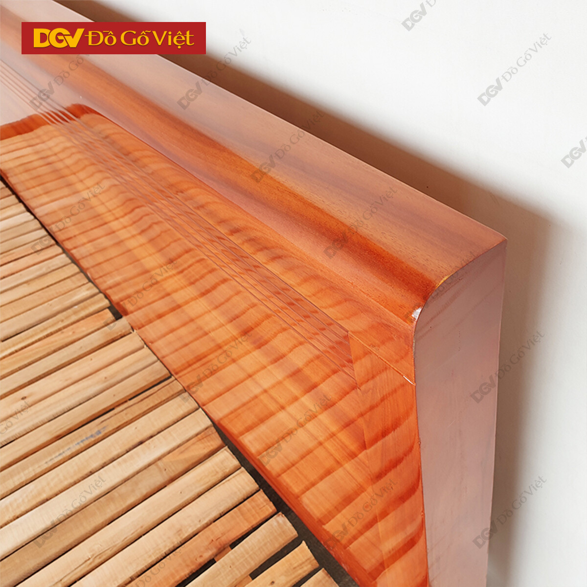 Giường ngủ gỗ xà cừ sử dụng bộ vạt phản từ gỗ tự nhiên giúp mặt giường dẻo dai, không bị cong trũng, hư gãy khi sử dụng. Giường được cố định chắc chắn với các mộng gỗ ghép nối liền mạch, không gây tiếng ồn khó chịu khi trở mình như các mẫu giường gỗ công nghiệp, giường sắt khác.