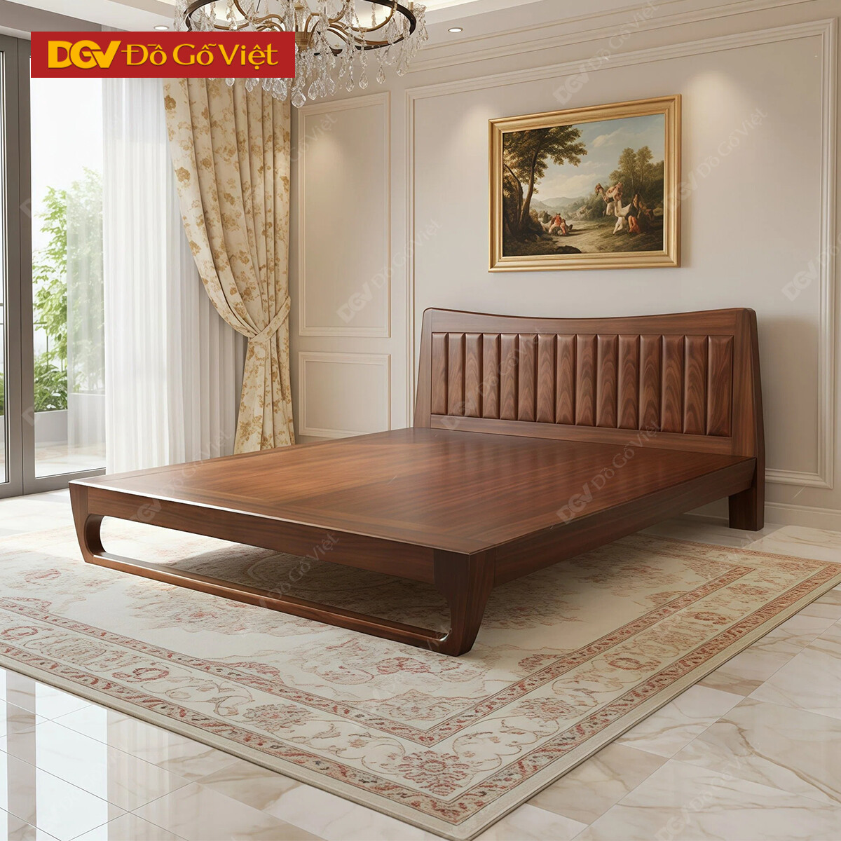 Giường Gỗ Hiện Đại Kiểu Đầu Bằng Chạy Chỉ Đẹp Tinh Tế