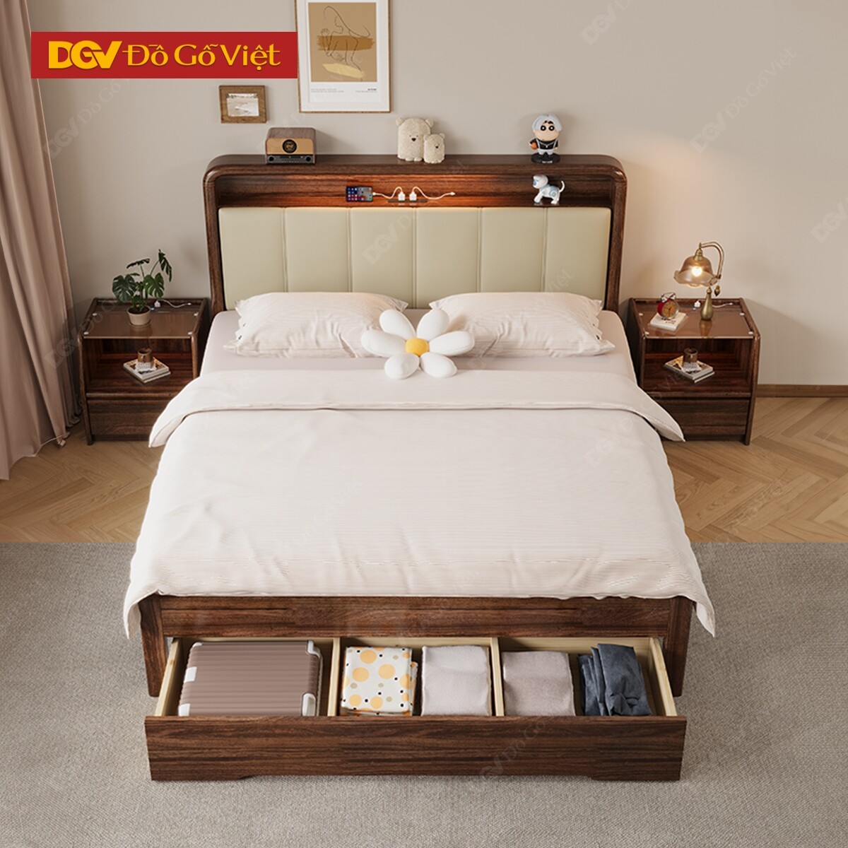 Giường Ngủ Veneer Óc Chó Hiện Đại Tích Hợp Kệ Và Ngăn Kéo